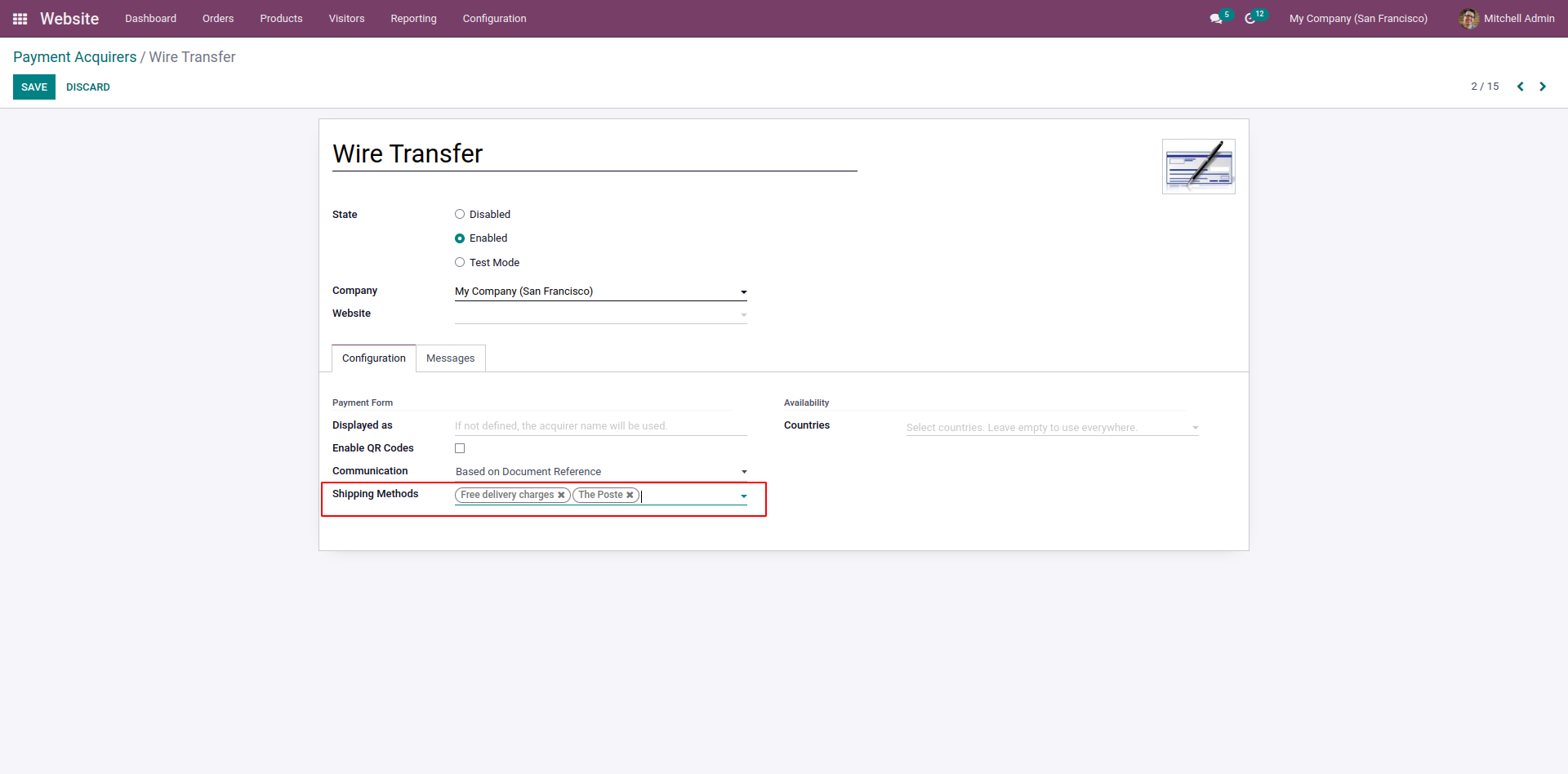 Shipping Methods of Payment Providers will be listed while we select the Payment Provider in Website.