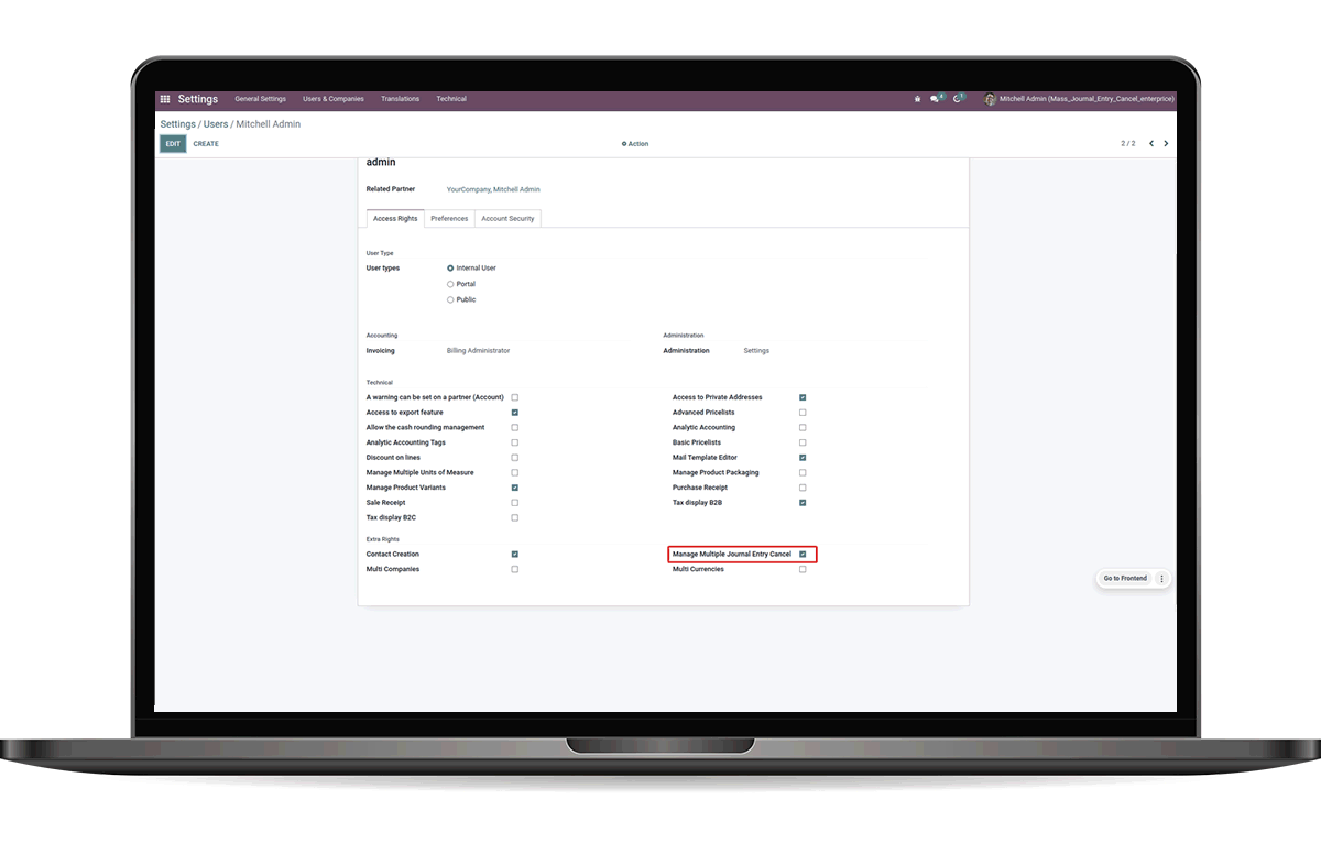 User can select multiple journal entries and cancel very quick.