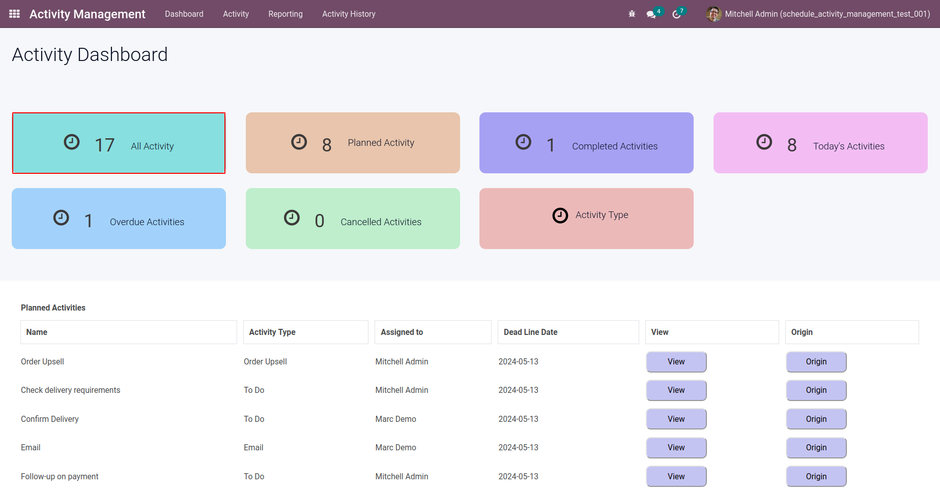 While clicking on the dashboard all activity card it will redirect to all activity window.