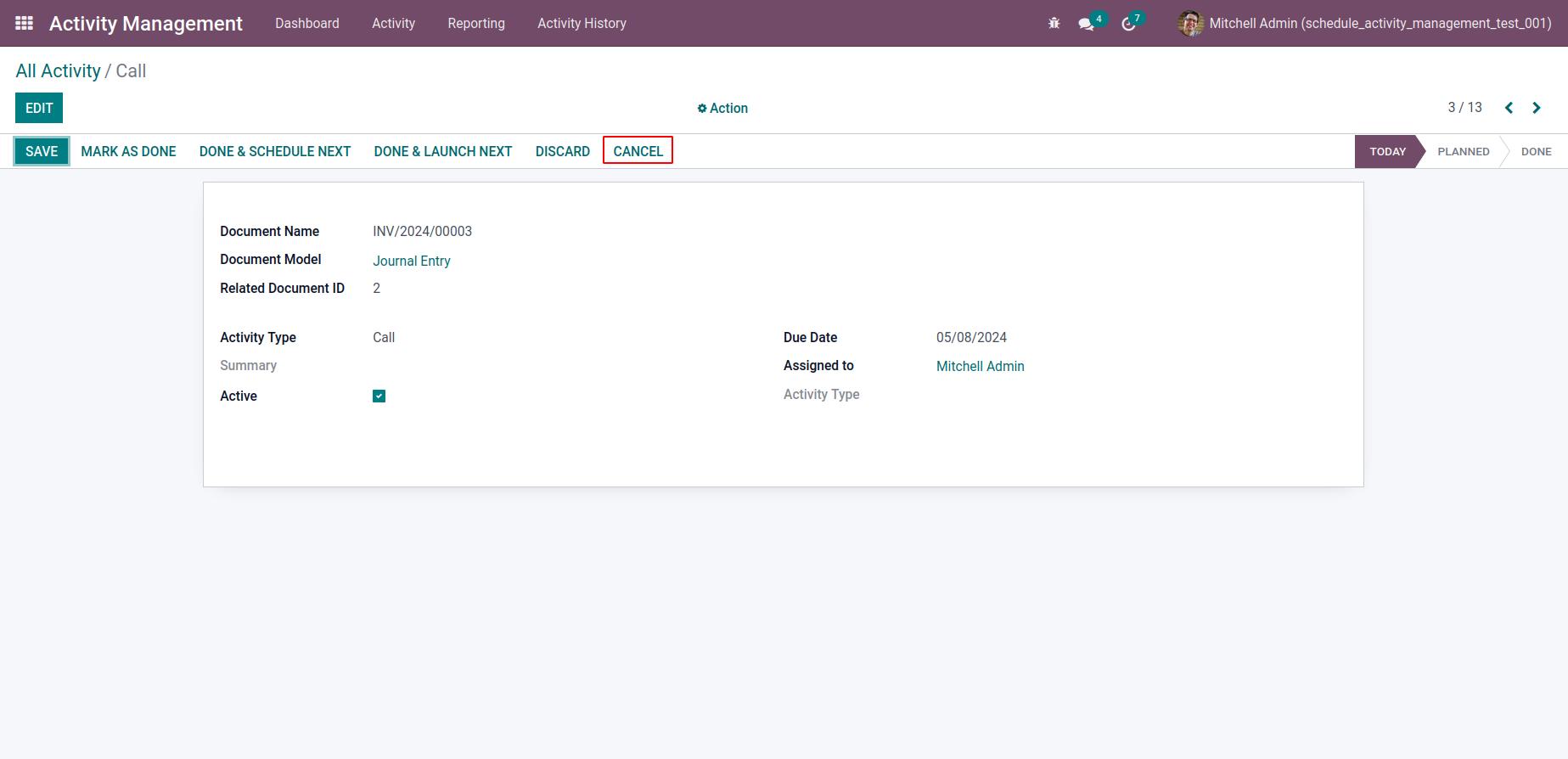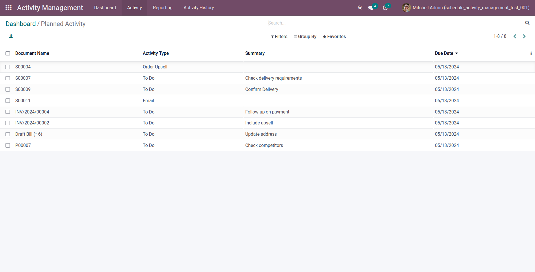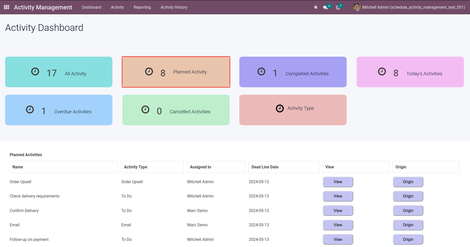 While clicking on the dashboard planned activity card it will redirect to planned activity window.