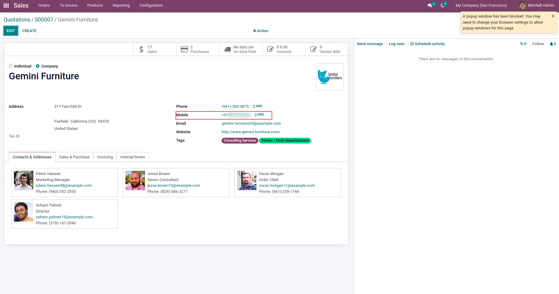 We can Choose a mobile number from 'To' option, can send message to the number by clicking the 'Send Message' button.