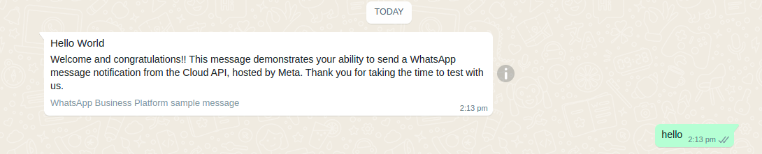 We add Call back url for the webhook here. It will trigger a response while we receive whatsapp message to the Business whatsapp. Also need to provide a verification token to connect it, click on 'Verify and Save' Button. The Webhook format is "ip_address/whatsapp_message".