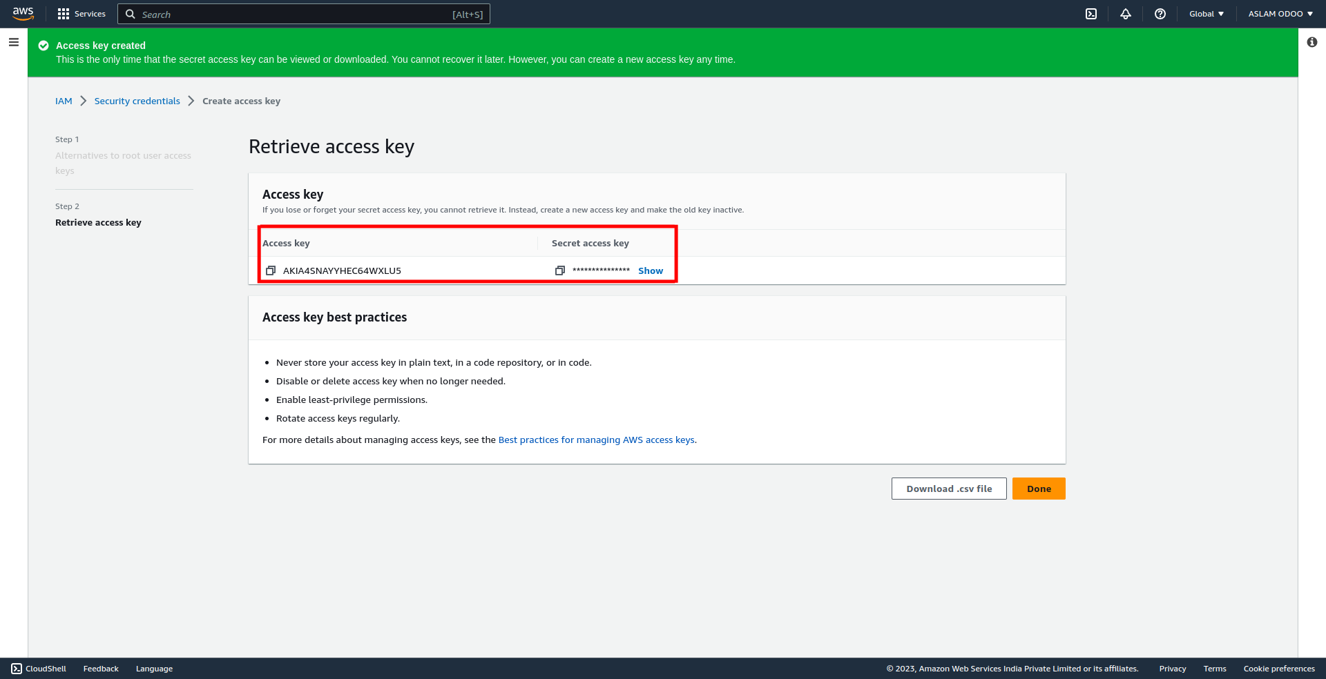Login to Amazon Web Services. Goto --> Security Credentials, Create Access Key