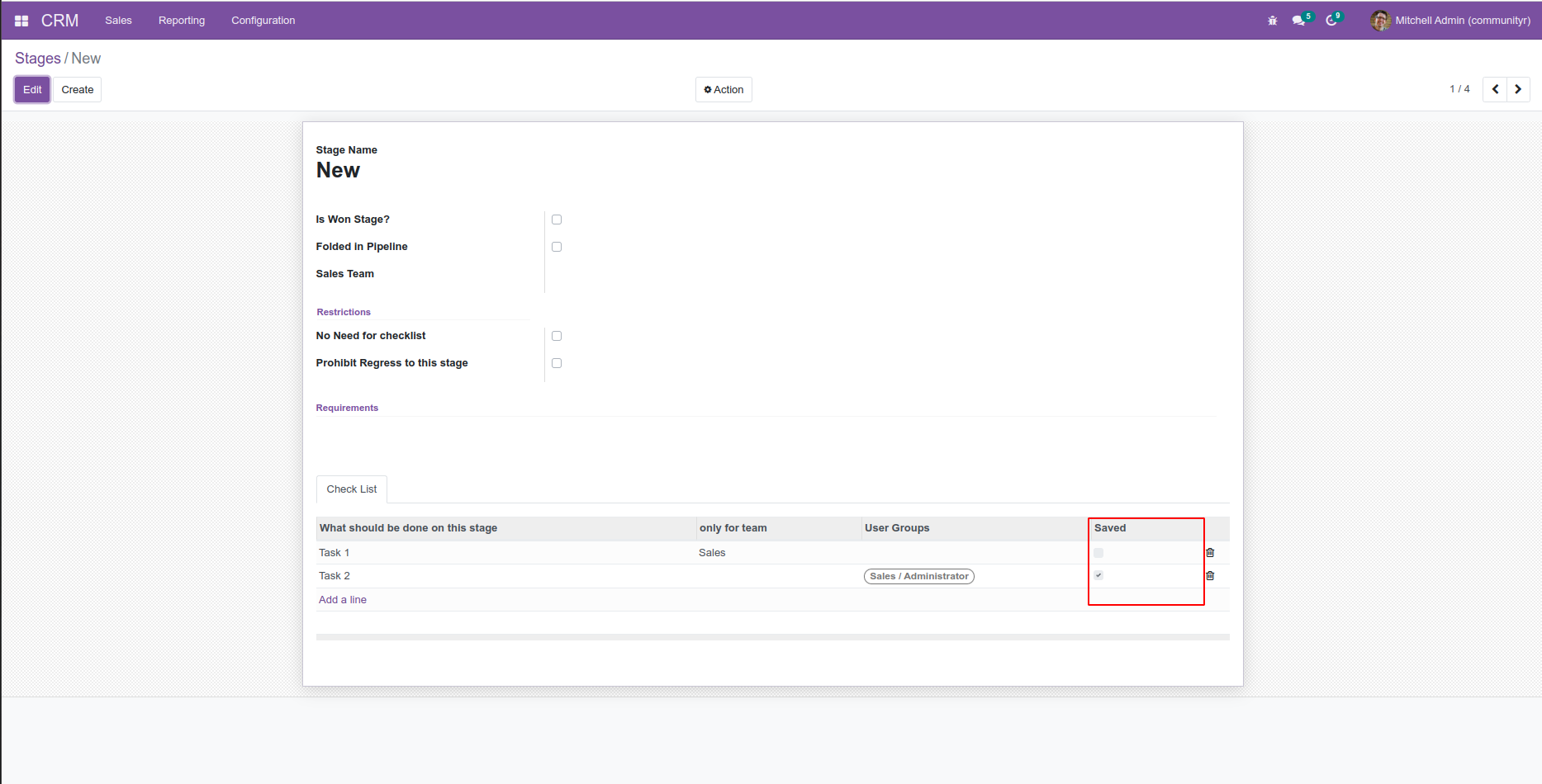 If this option checked in a stage, opportunity progressing from this stage does not require check list to be completed.