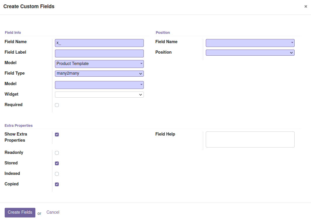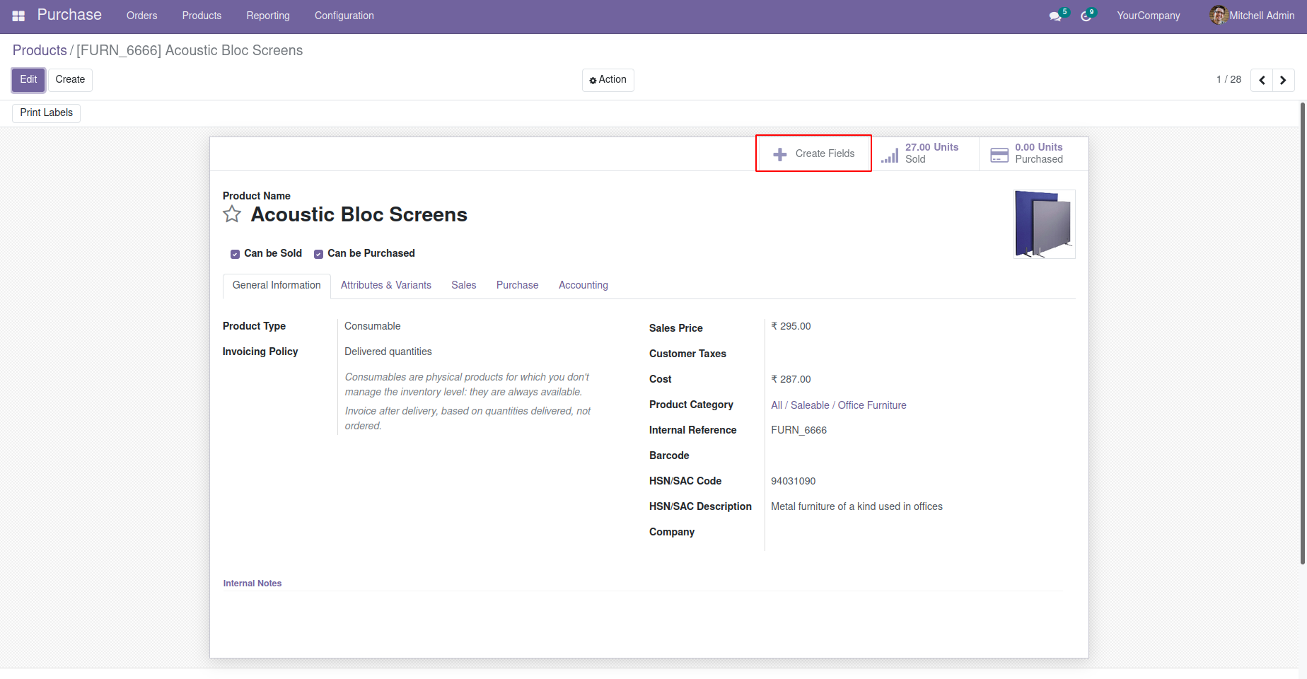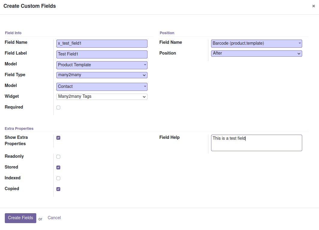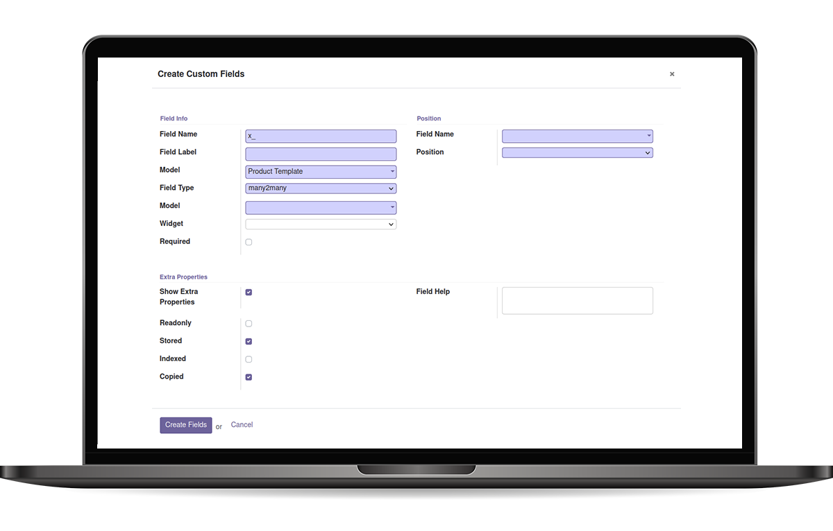 The Dynamic Product Fields helps with easy creation of custom fields on products without any coding. This module helps to add new fields on the product's form as per one's requirement. From the products view, one can click create fields and can create a new custom field without any coding.