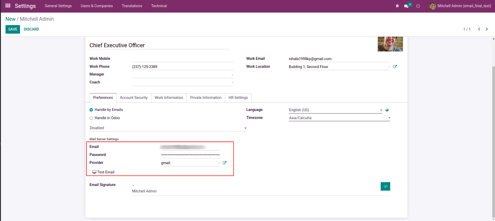 Complete the Mail Server Settings and then click the "Test Email" button to establish both Incoming and Outgoing Mail Servers.