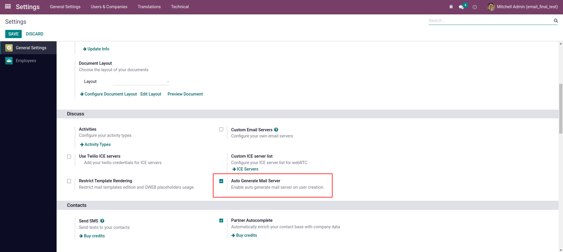Opting for Auto Generate Mail Server will result in automatic configuration of both Incoming and Outgoing Mail Servers when the User is created.