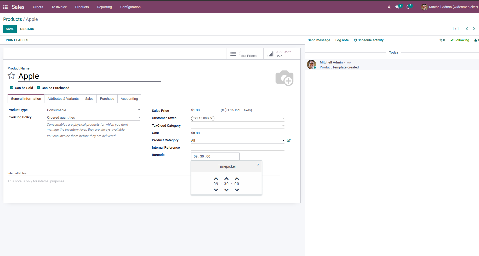 Add Time Picker Widget That Can Be Used With Character Type Fields In Odoo