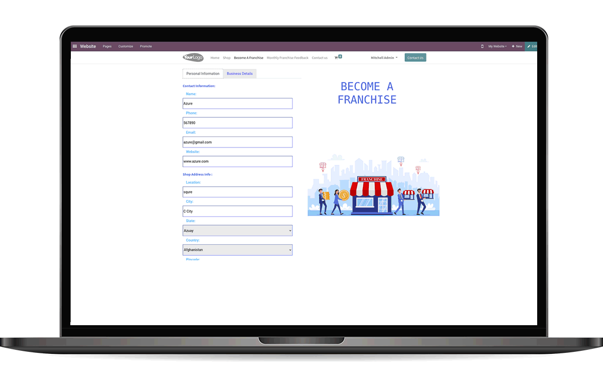 Admin user can Accept or Cancel the Franchise Requests based on the details.