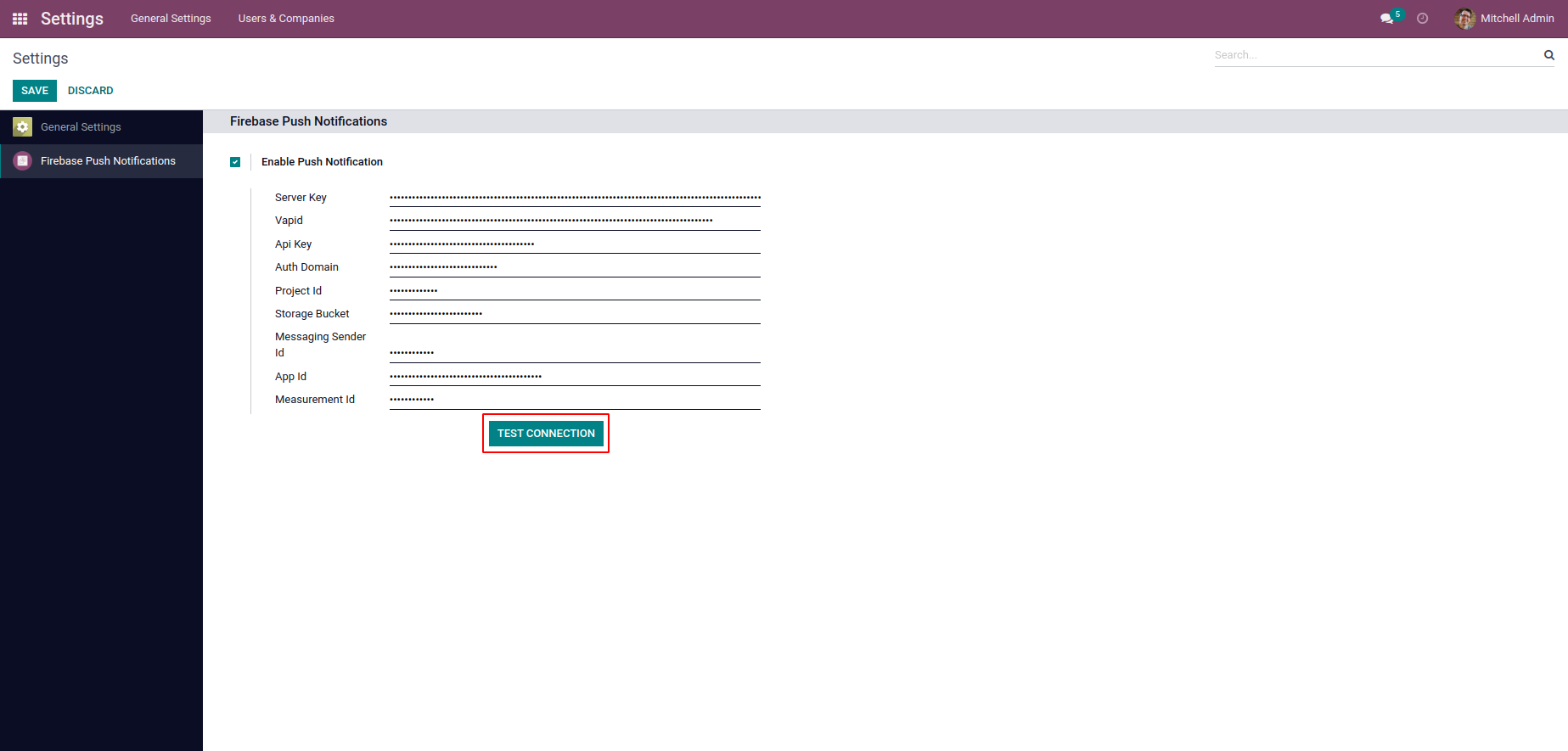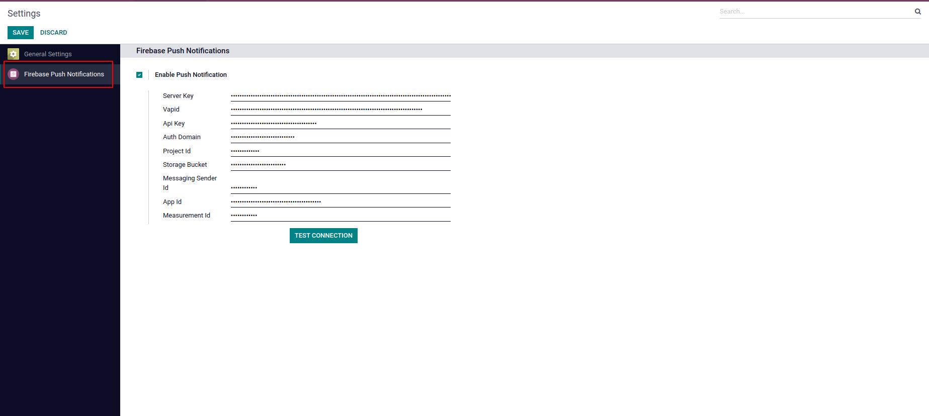 Goto the Settings and enable the 'Enable Push Notification' then you can set the credential