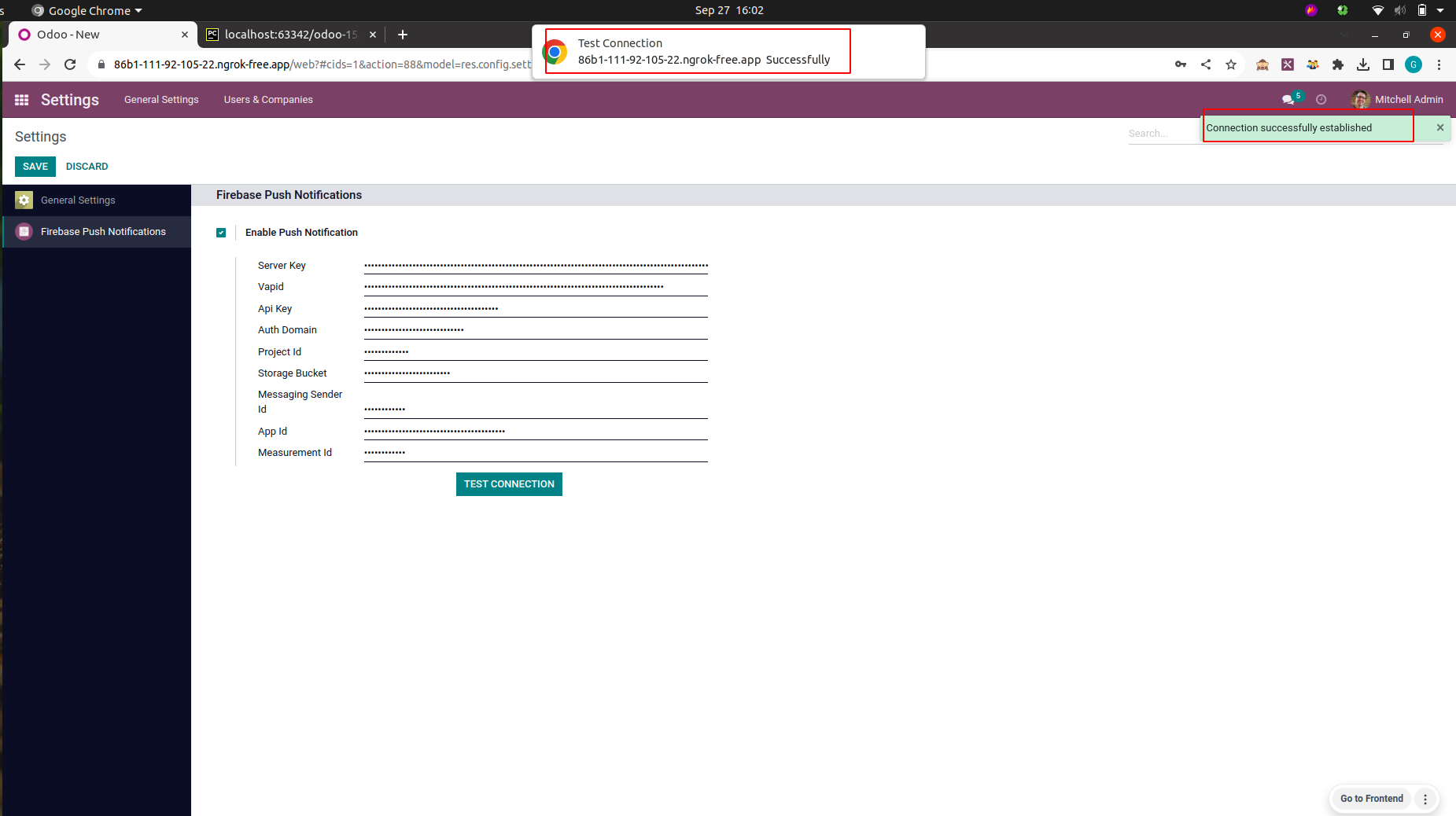After Allowing the notification access in the browser you can click the "TEST CONNECTION" Button