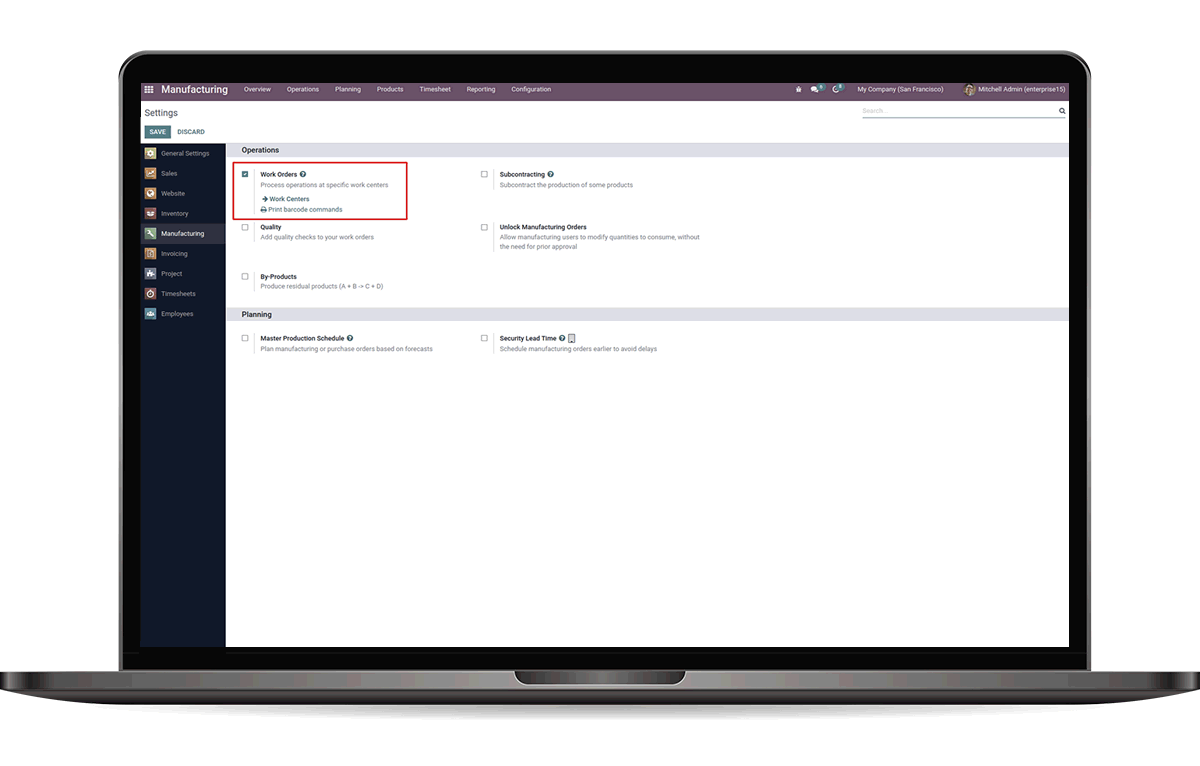 If enabled, the Work order tab will be added. And there will be an option to choose the Employee for the corresponding work order.