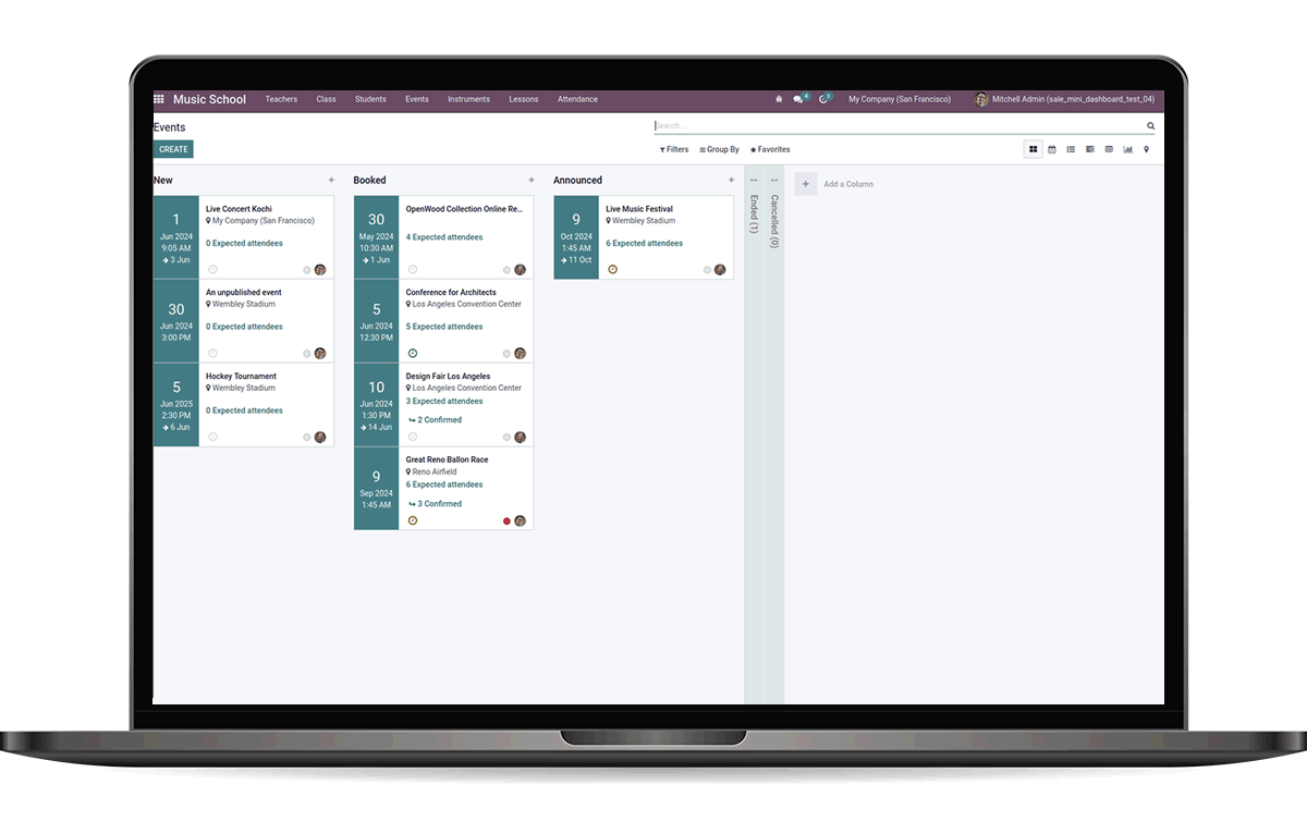 Music School institute is a core module which can manage any type of music school. The user can download the module and manage the music school with lots of different class. It can be used to manage music school event, product, students, and teacher.