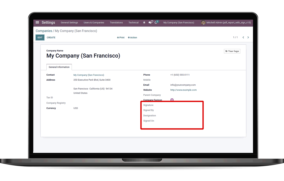 Allows to print signature in all pdf report.