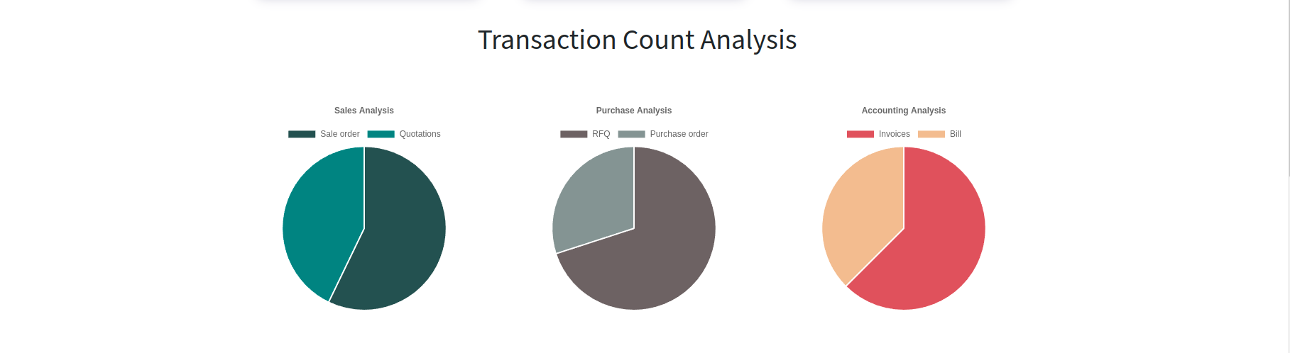 Also, there are analysis pie chart for Sales, Purchase and Accounting