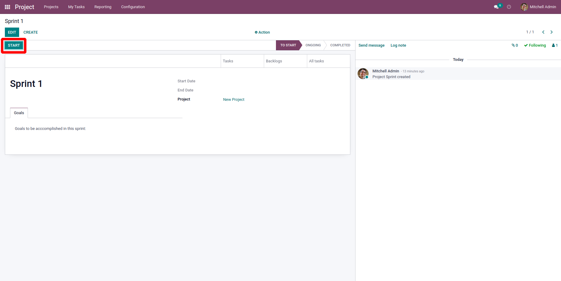 This Module Enables Sprint Functionality to the Odoo Project Module, Enabling Efficient Task Management within Fixed Timeframes.