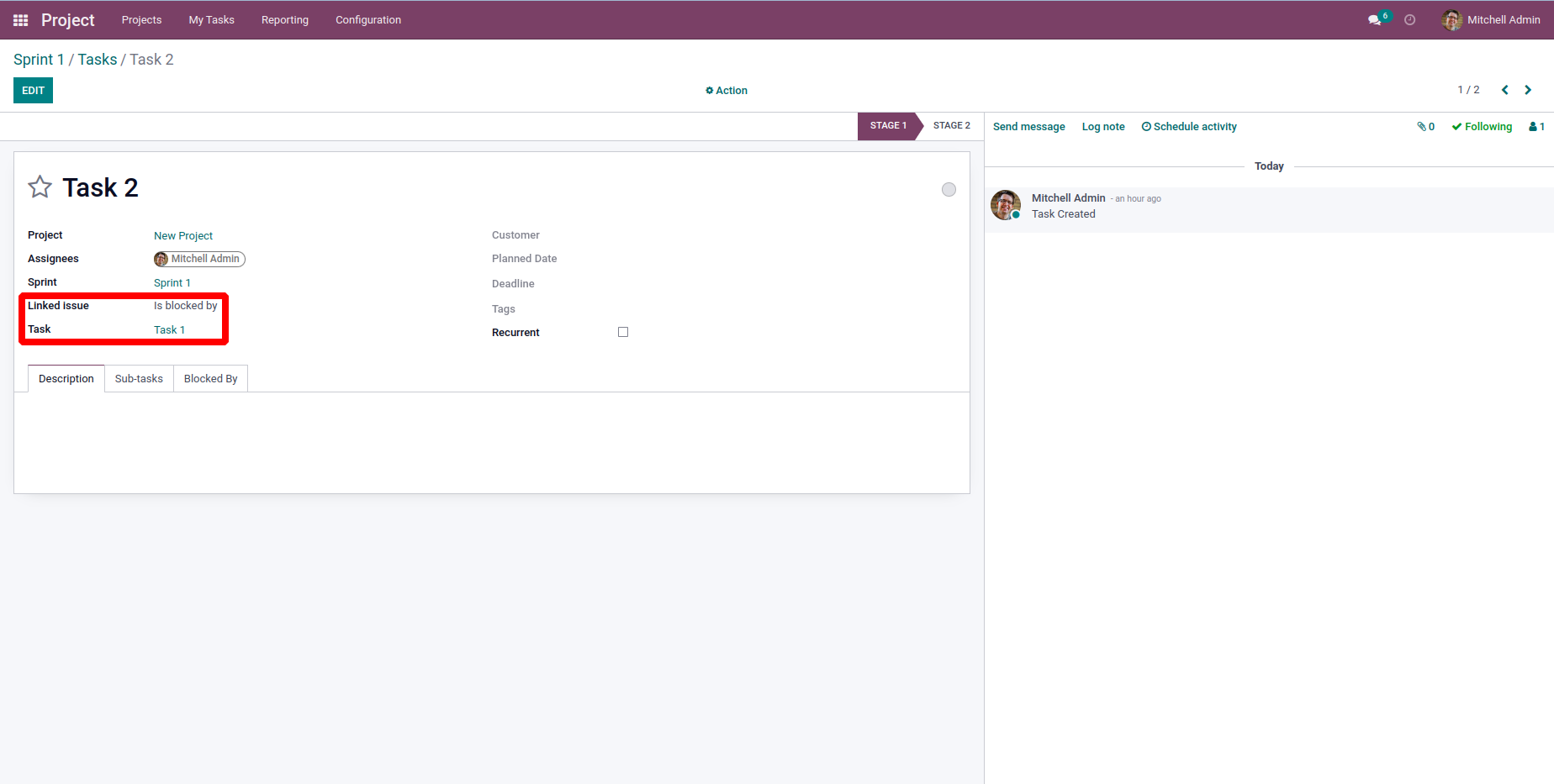 Users can Link an Issue to a Task, Ensuring that the Task's Status cannot be Changed until the Linked Issue is Resolved.