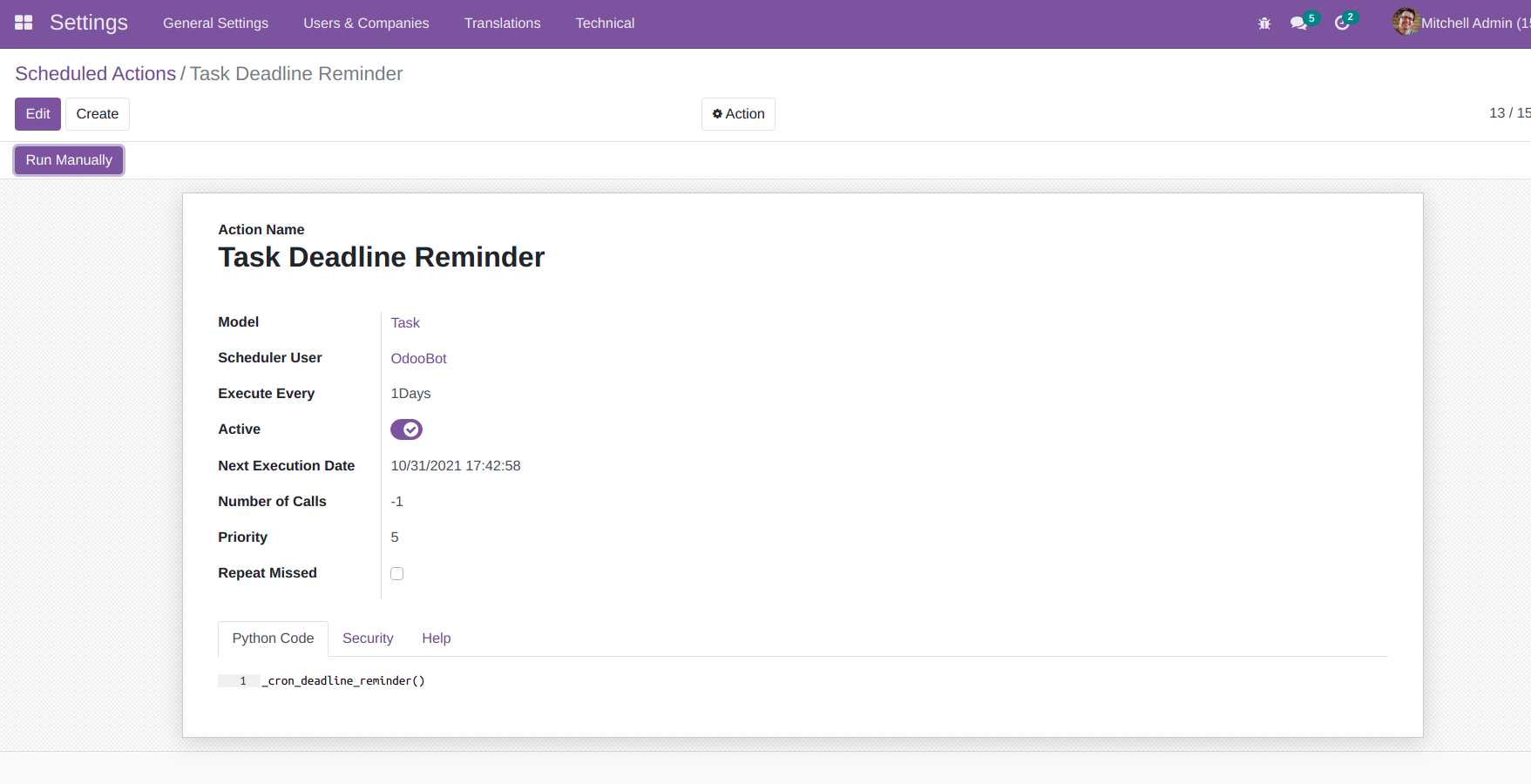This module send auto reminder to responsible user of task if the deadline is today. Cron job will run everyday and search for task which due today and send reminder email to employee.