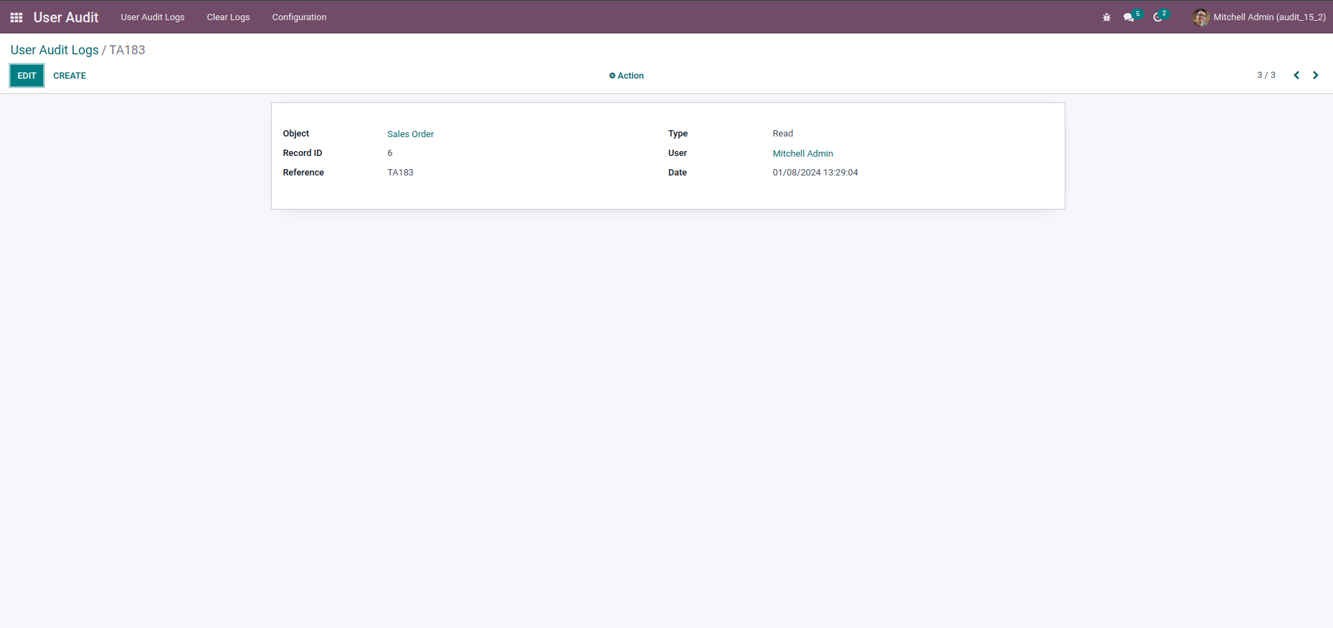 By setting up for tracking the write operation form the user audit edit and do some write on the specified model.