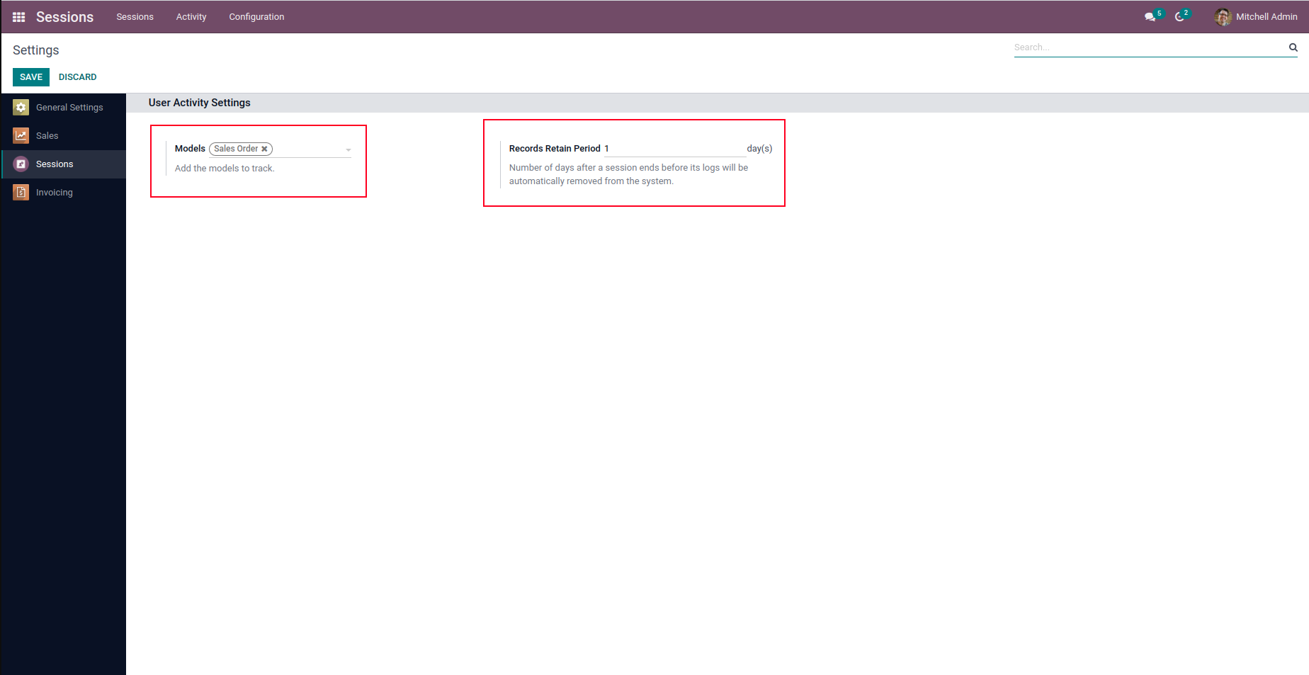 Select the model to be tracked in here. Also, the Records Retain Period can be selected from here.