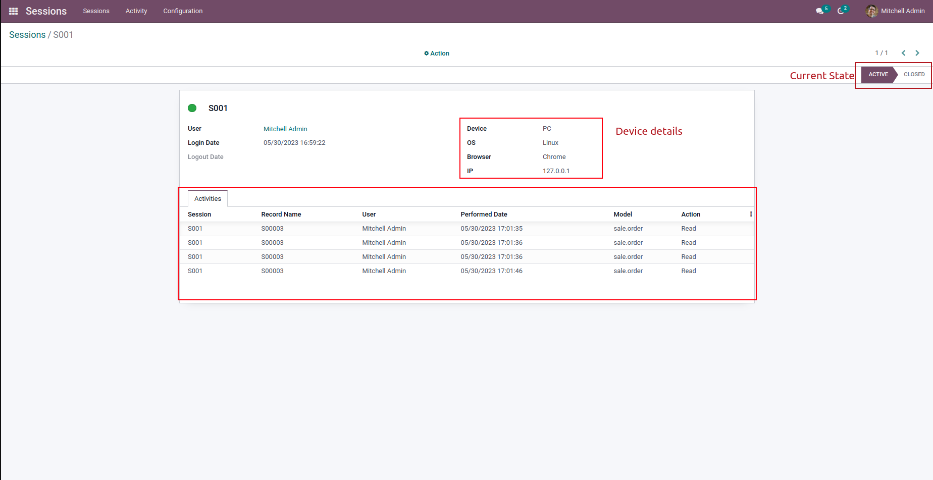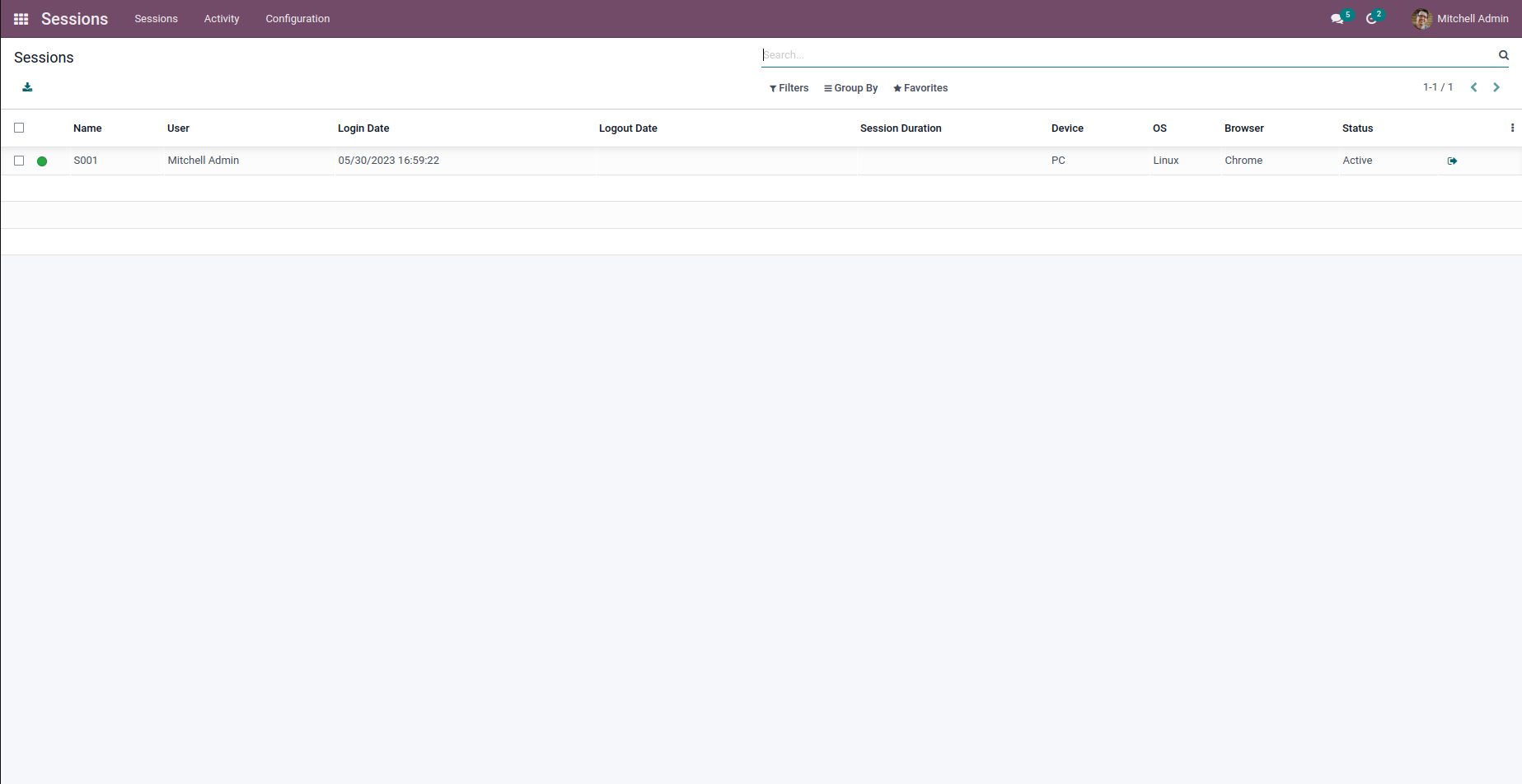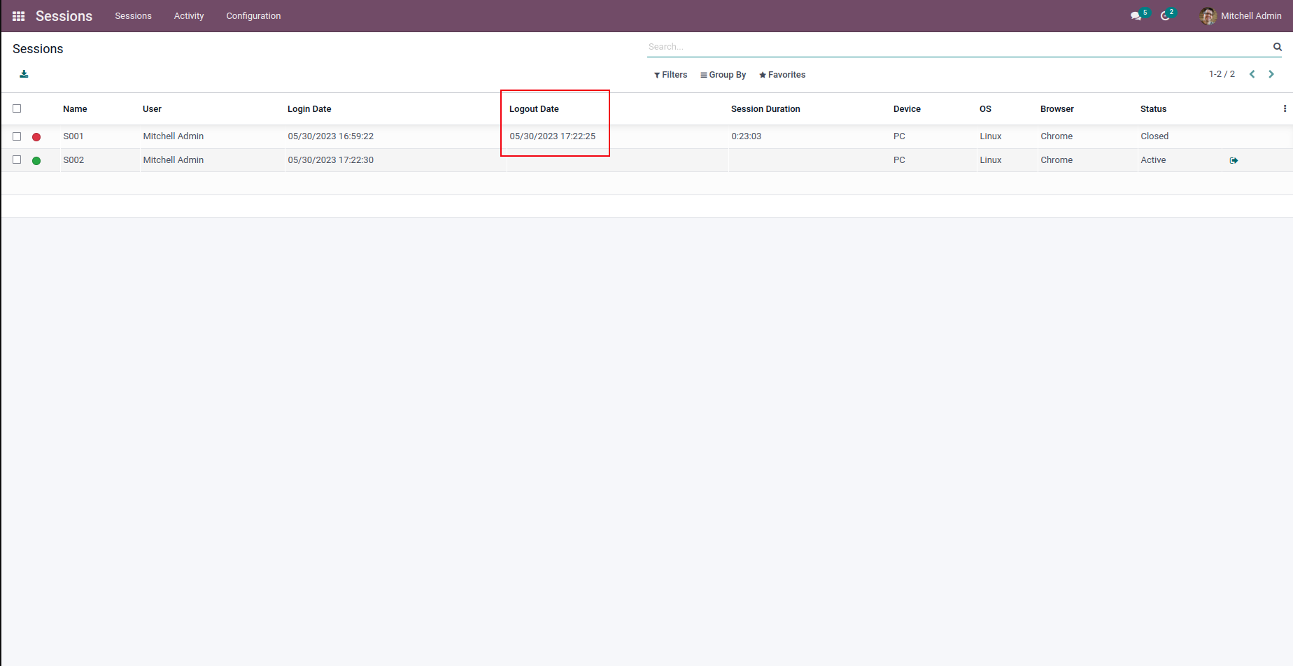 Logout Date, Device, OS, Browser, IP, Session ID and also the