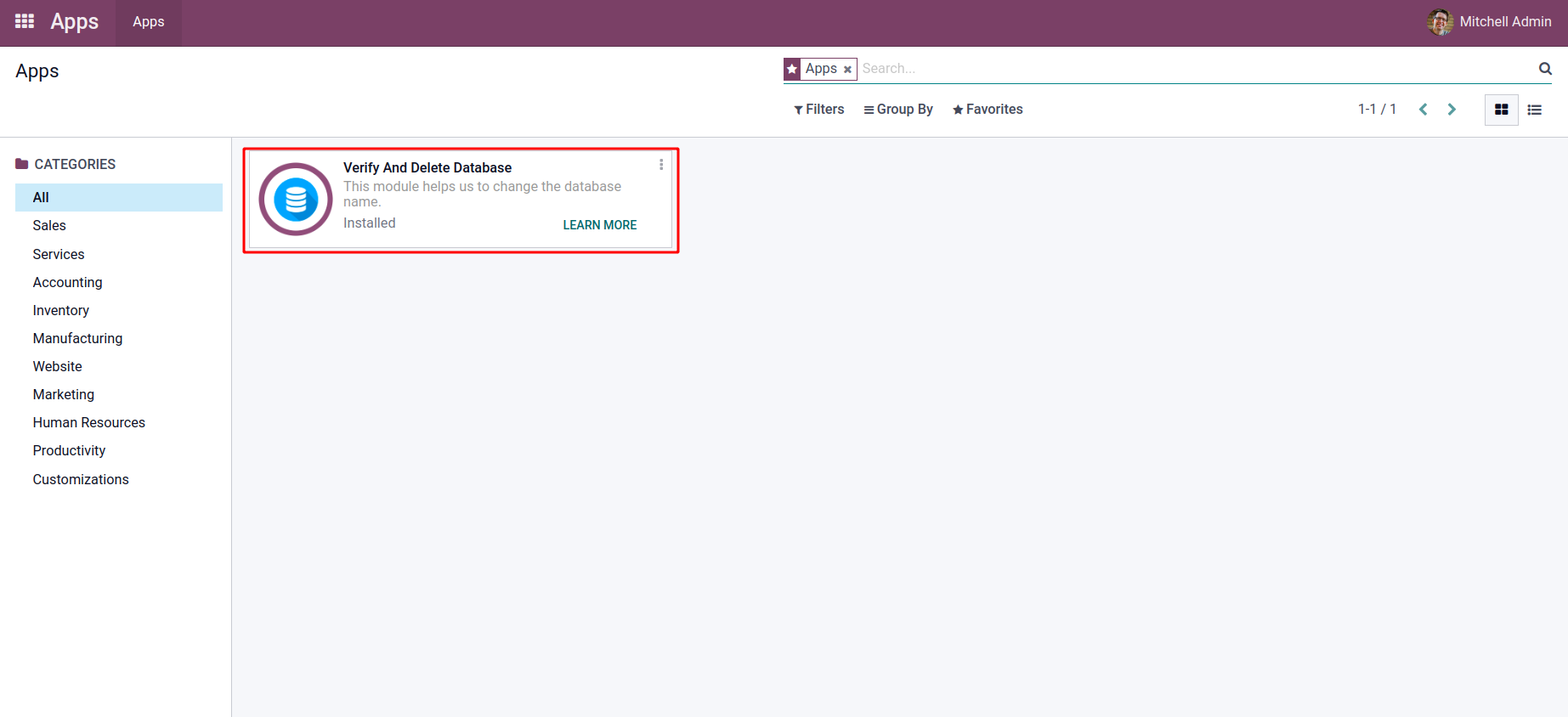 Install the module 'Verify And Delete Database' from the apps.