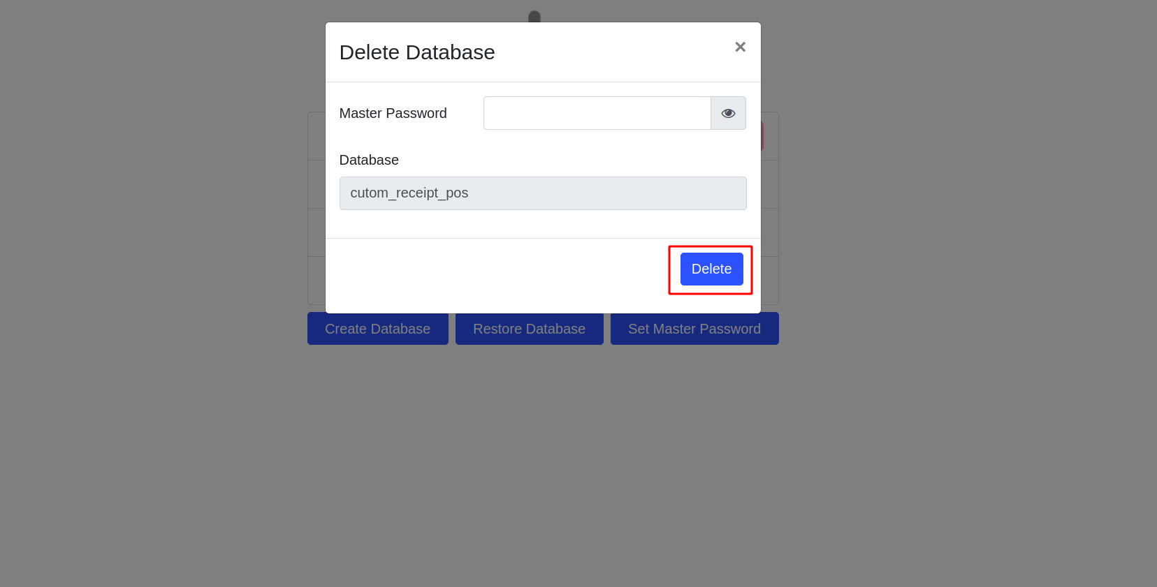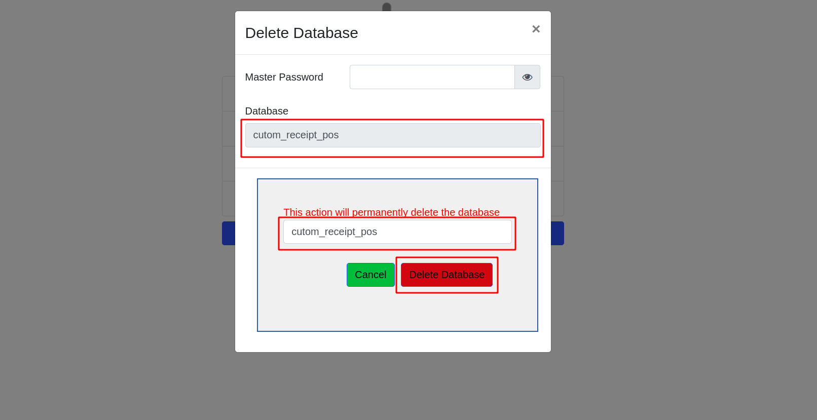 If the entered database name is same, the deletion process will be successful.