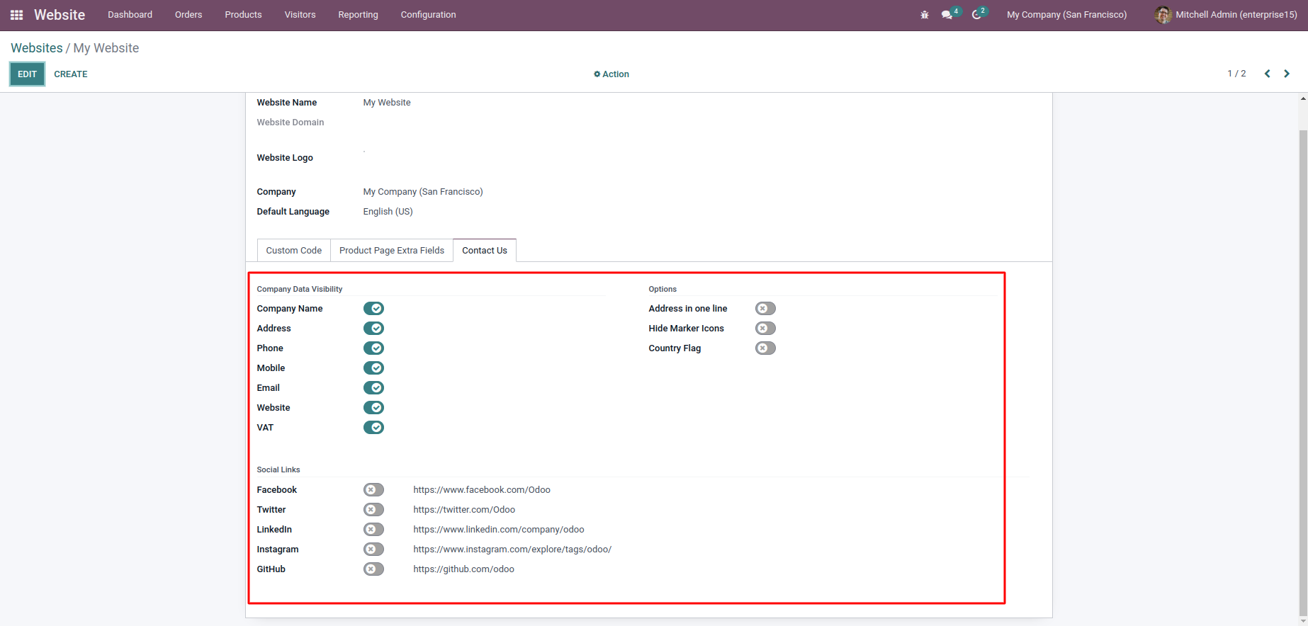 1.To activate the Address in one line, we can see that the address in one line. Other fields are activated, then it will show or hide icons and also will show the country flag.