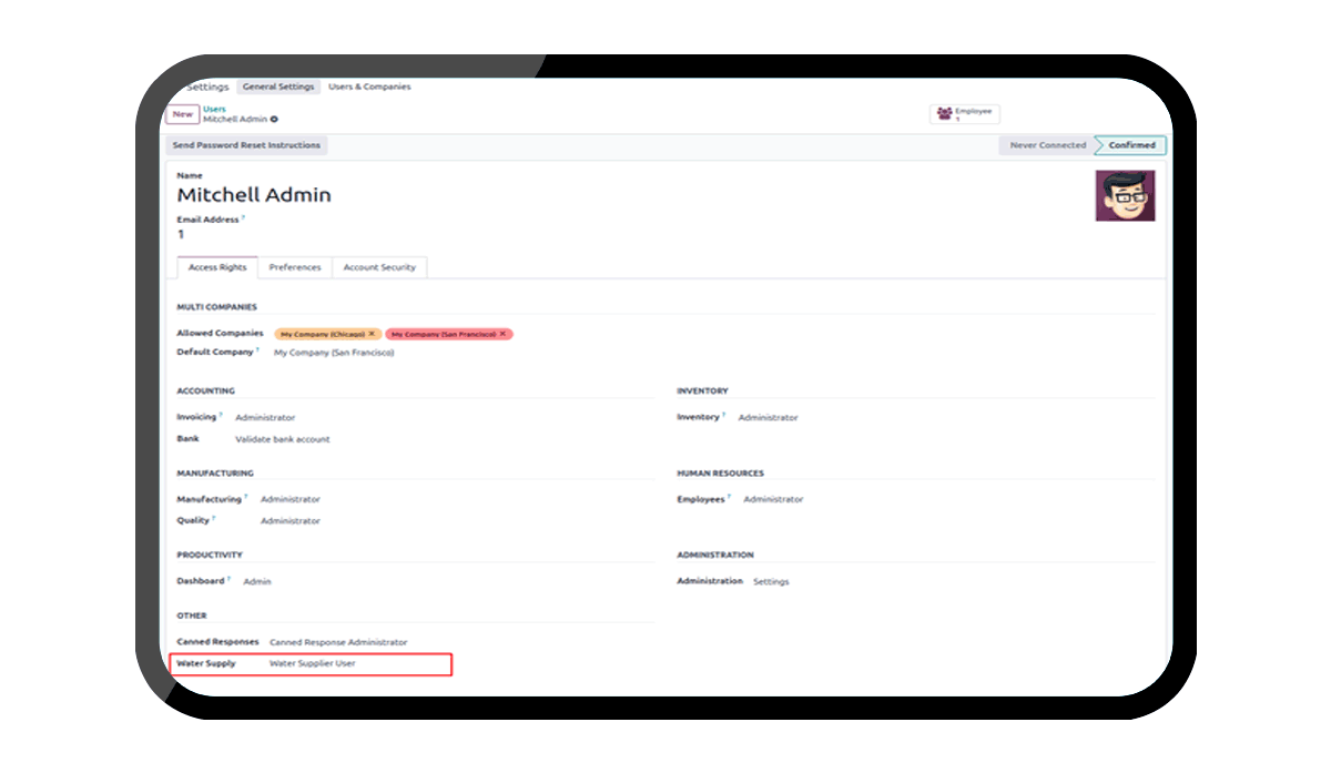 Click the “Manufacturing Orders” Smart Button in the Water Supply Request form to see the related orders.