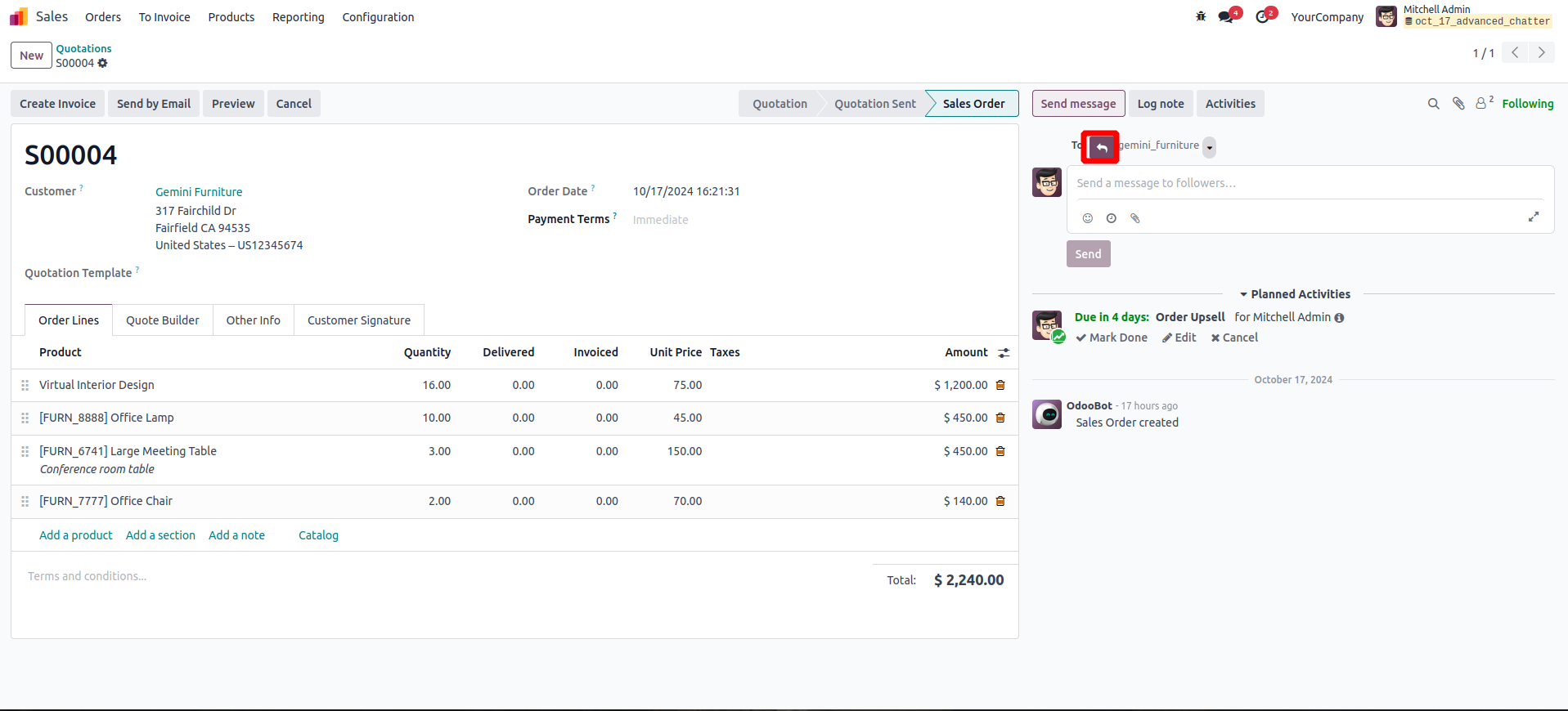Go to Settings -> Technical -> Messages. Here, you can view the messages you have sent. In the reply-to options, you will see the user we specified.