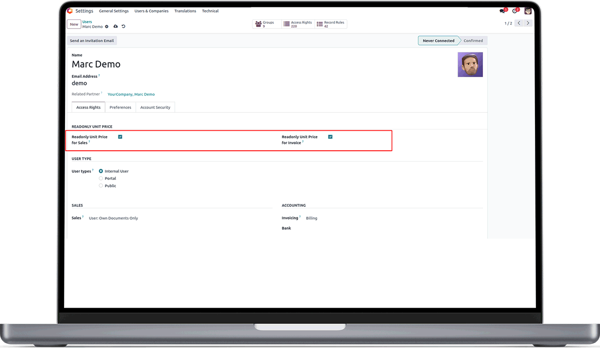 Go to Setting --> Users --> Enable Readonly Unit Price for Sales.