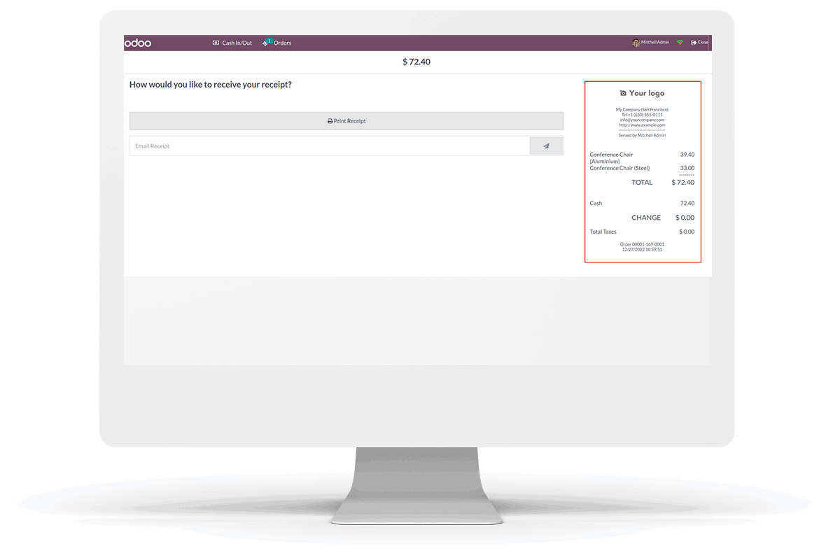 We can see the chosen receipts for the POS in the frontend of the POS, It will vary as per we're choosing from the Backend for each POS.