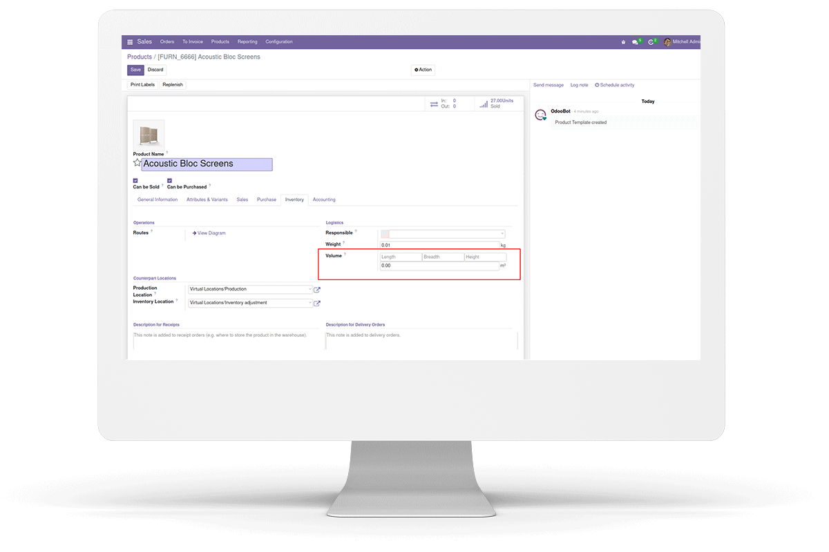 Length, Breadth and Height of the product in the product master page