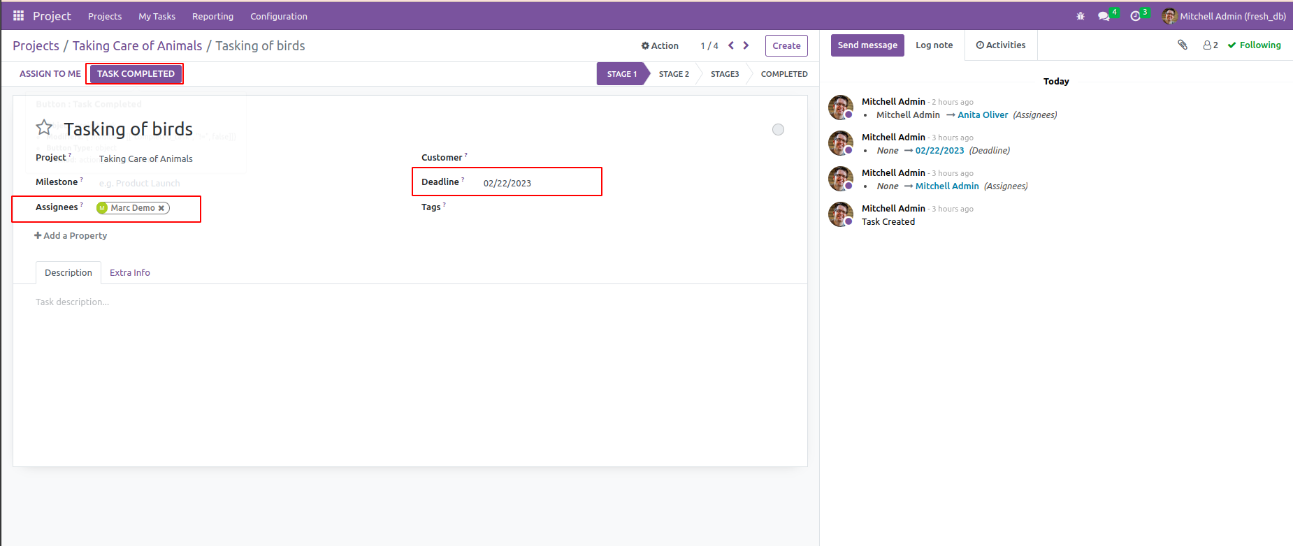 Set Deadline Date, Assigned User and if "Task Completed". .