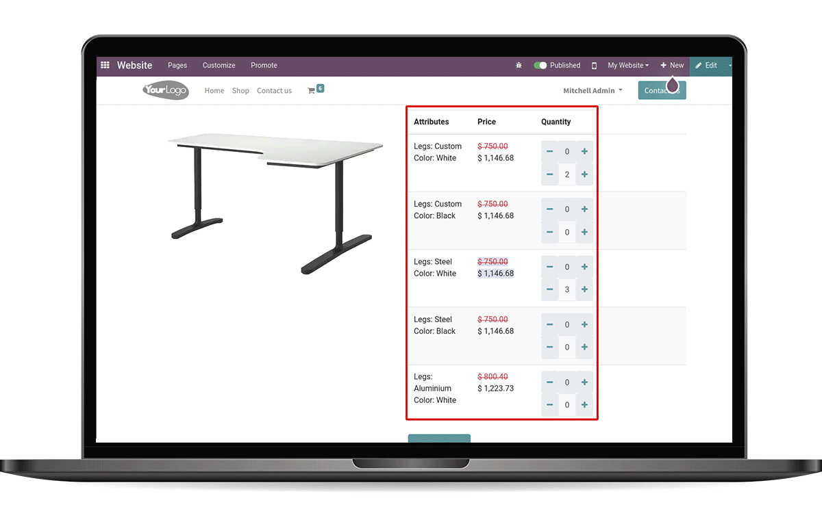 Customers can Add Multiple Variants of Products with Different Quantities to the Cart