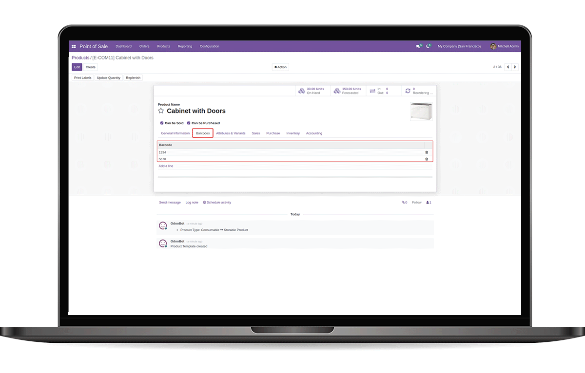 Odoo allows having a single barcode for products. This module allows you to set multiple barcodes for a product and product variants and use these barcodes for scanning the product in pos.