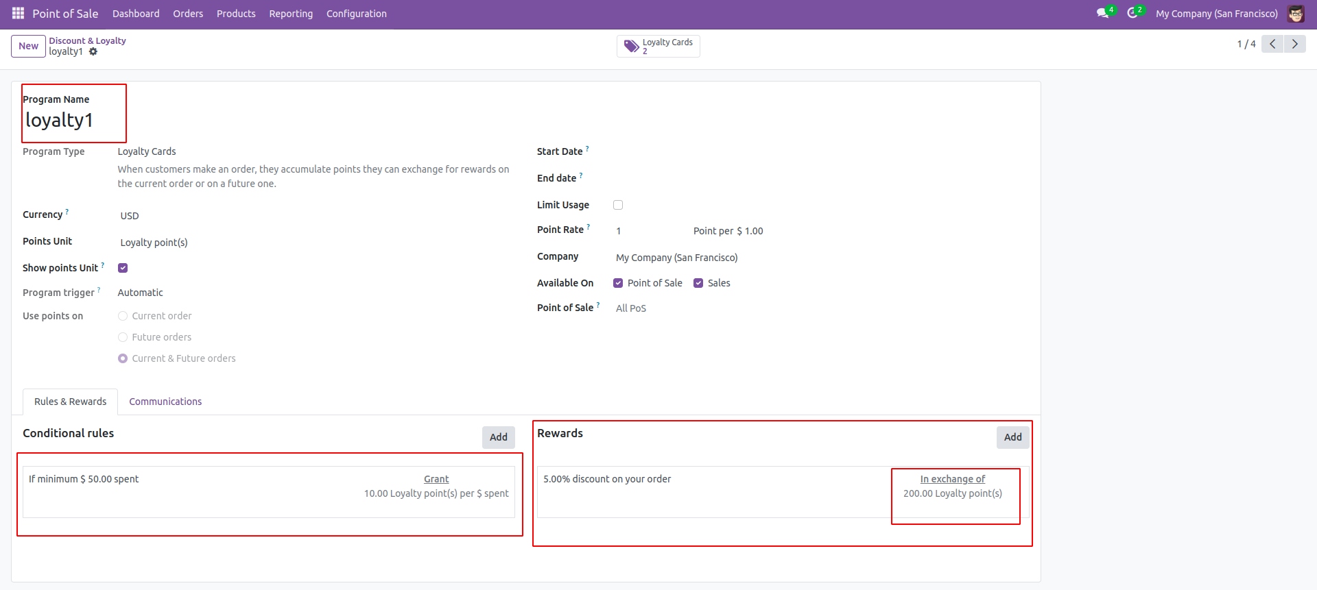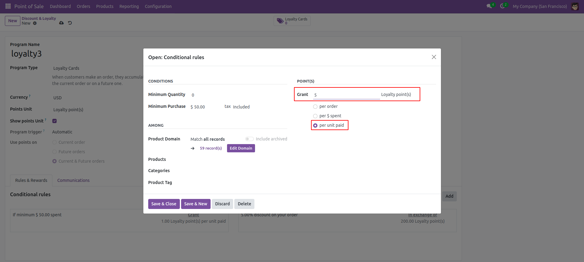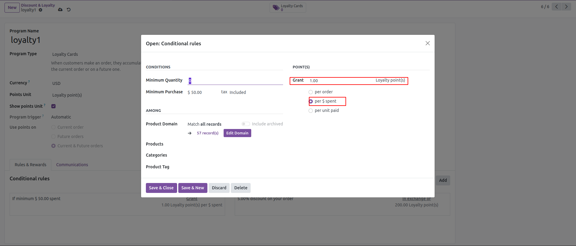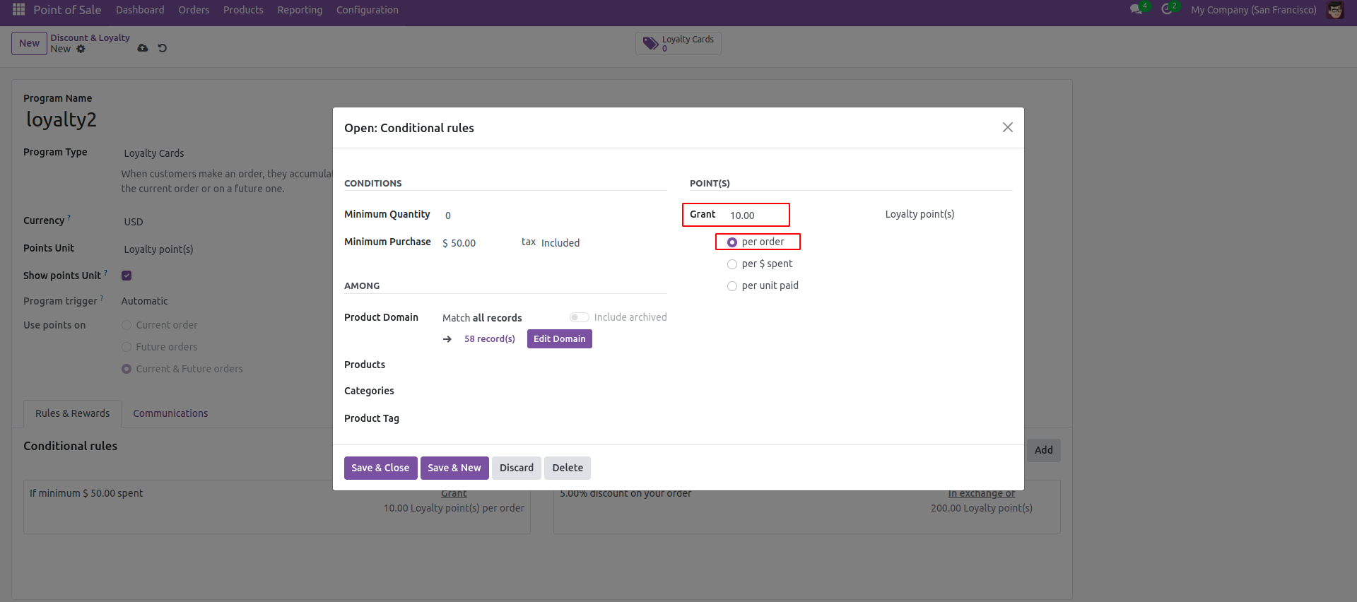 A new Reward type is added in the loyalty program. We can set condition in the reward form