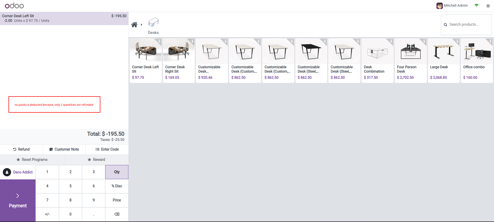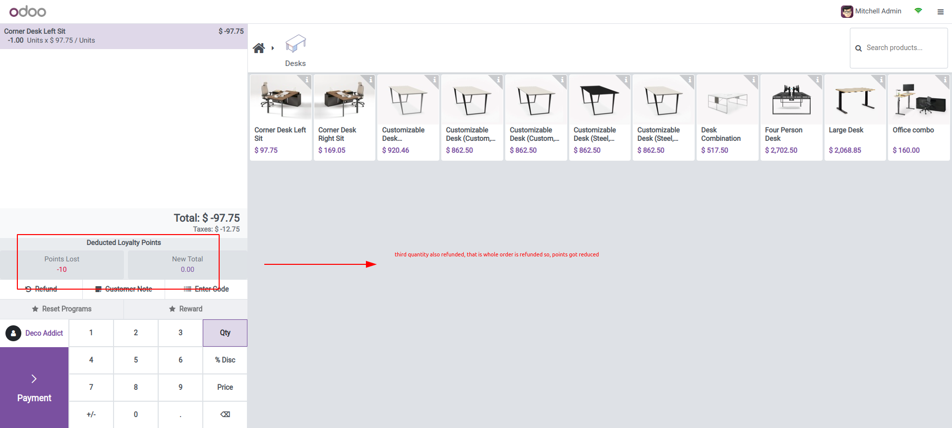 We can refund a quantity and check how the change in points in pos screen,receipt and customer's page
