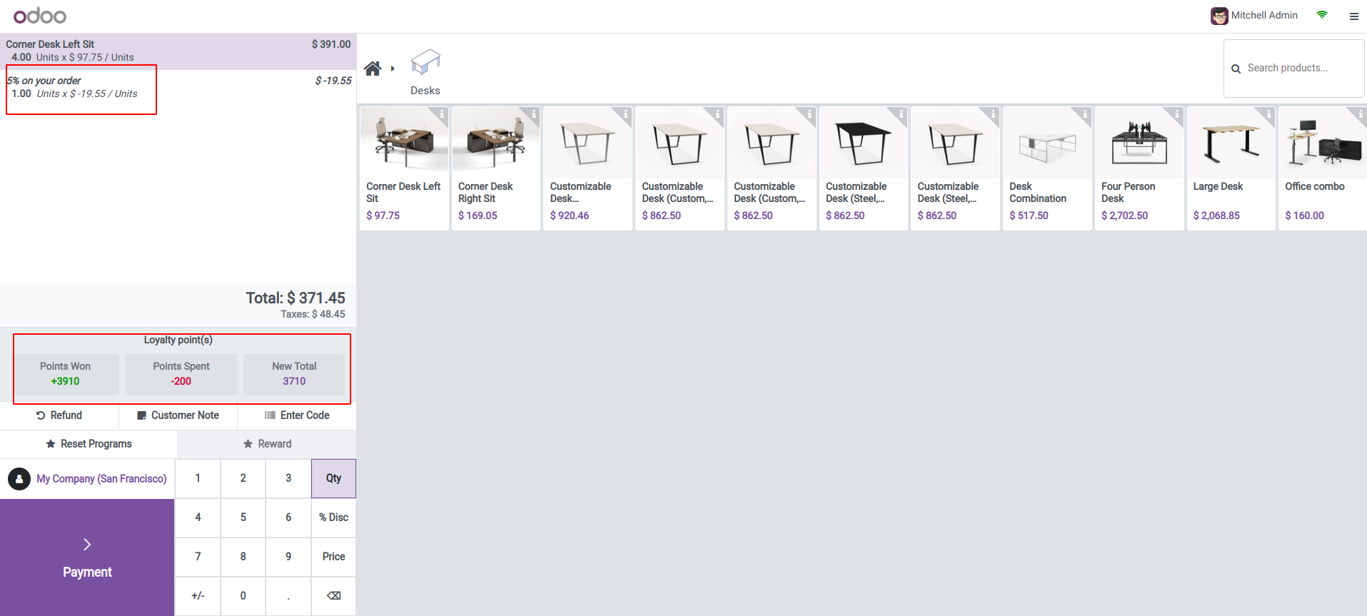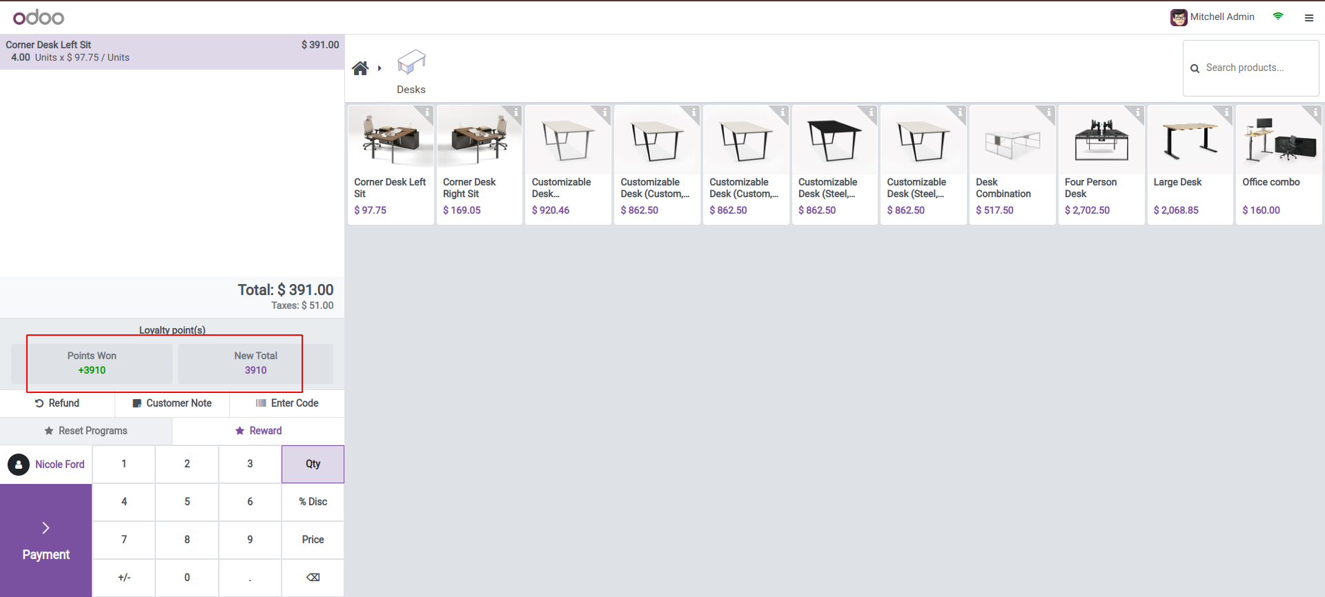 We can create another loyalty program with rule 5 points per unit, We can see how it reflects in the pos screen receipt