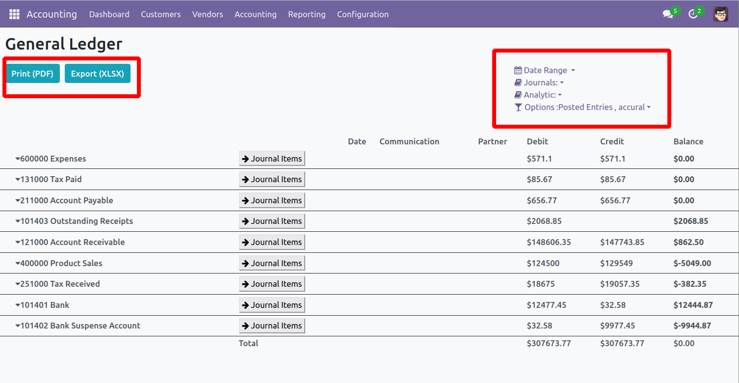 Dynamic Reports for Trial Balance, Profit and Loss, General Ledger, Tax Report, etc.