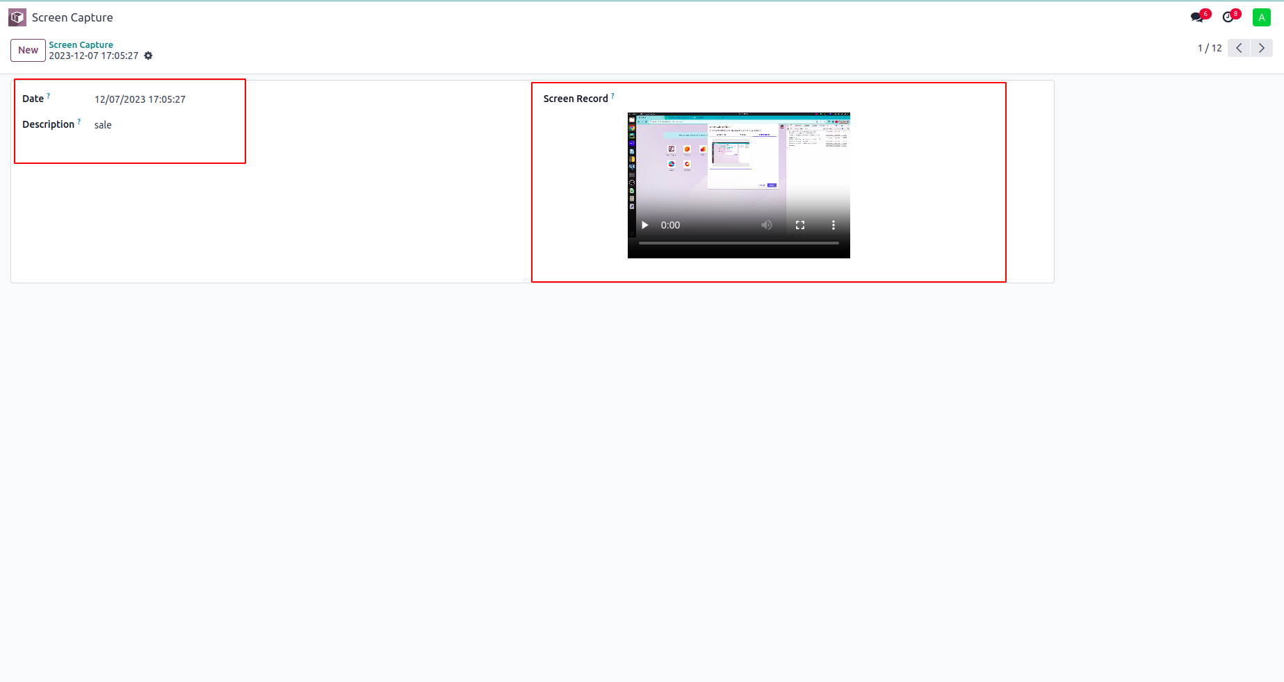 Record your screen with odoo and store it for future