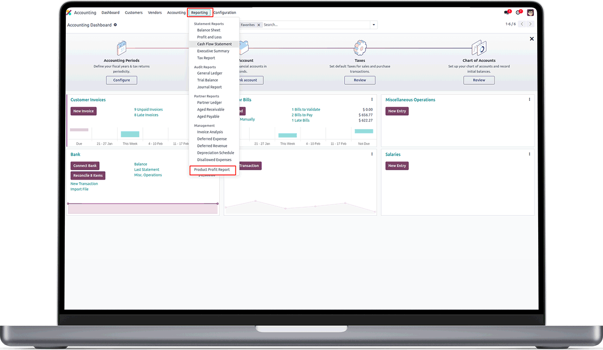 Choose the Product Profit Report menu item from Reporting Menu