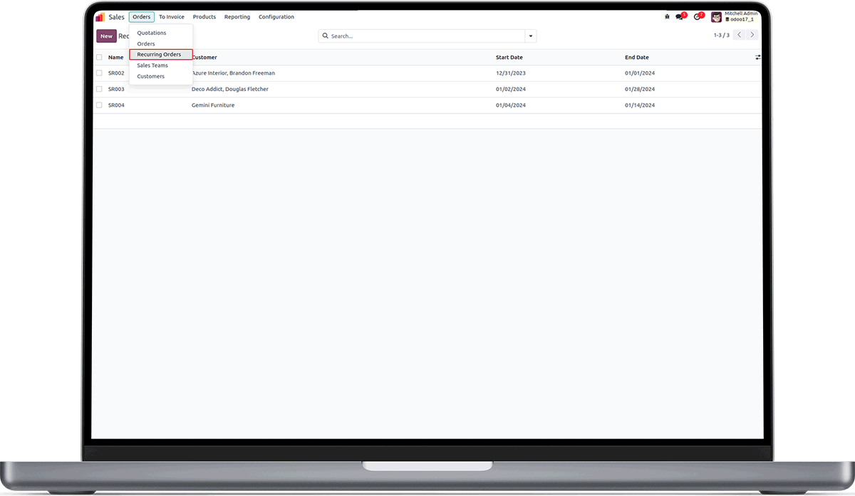Only we can create the Sale Order if the state is in Running and Un-archive, Also we can see the total Sale Orders and Quotations in smart button