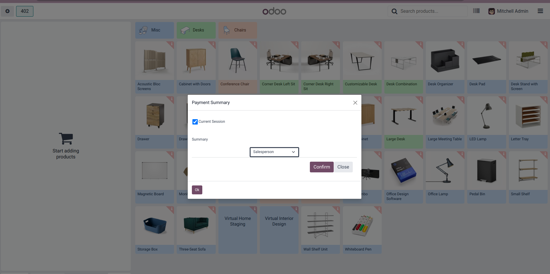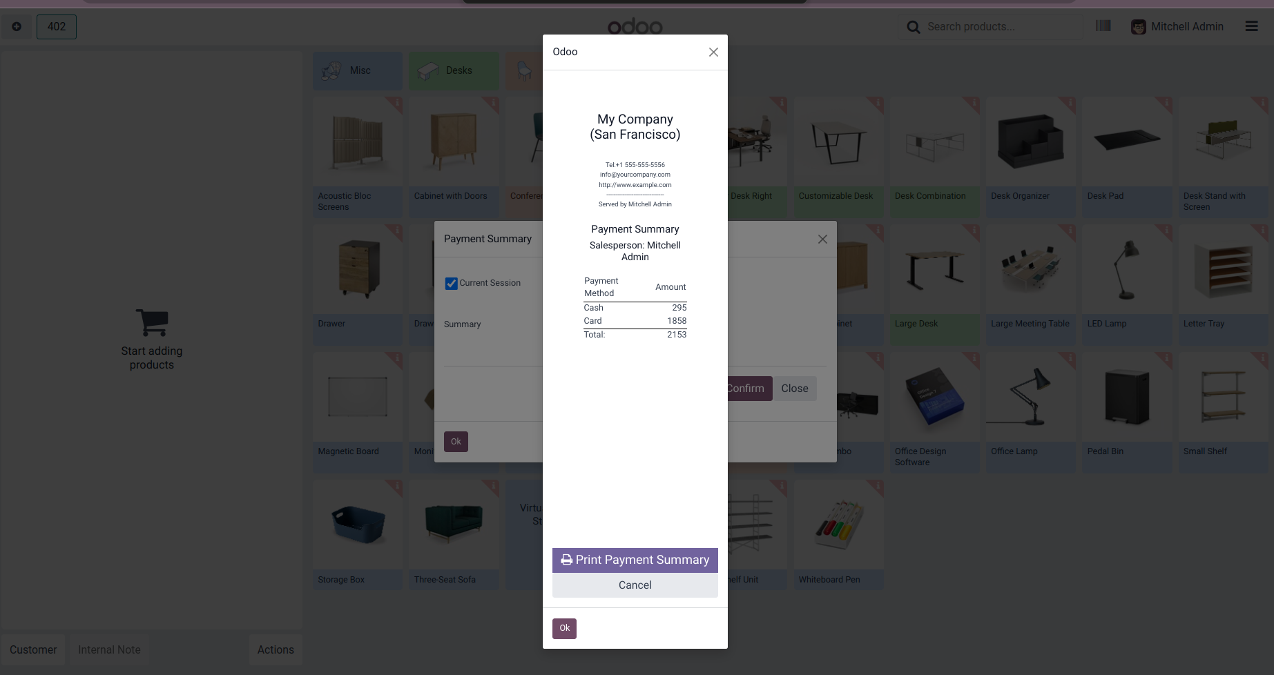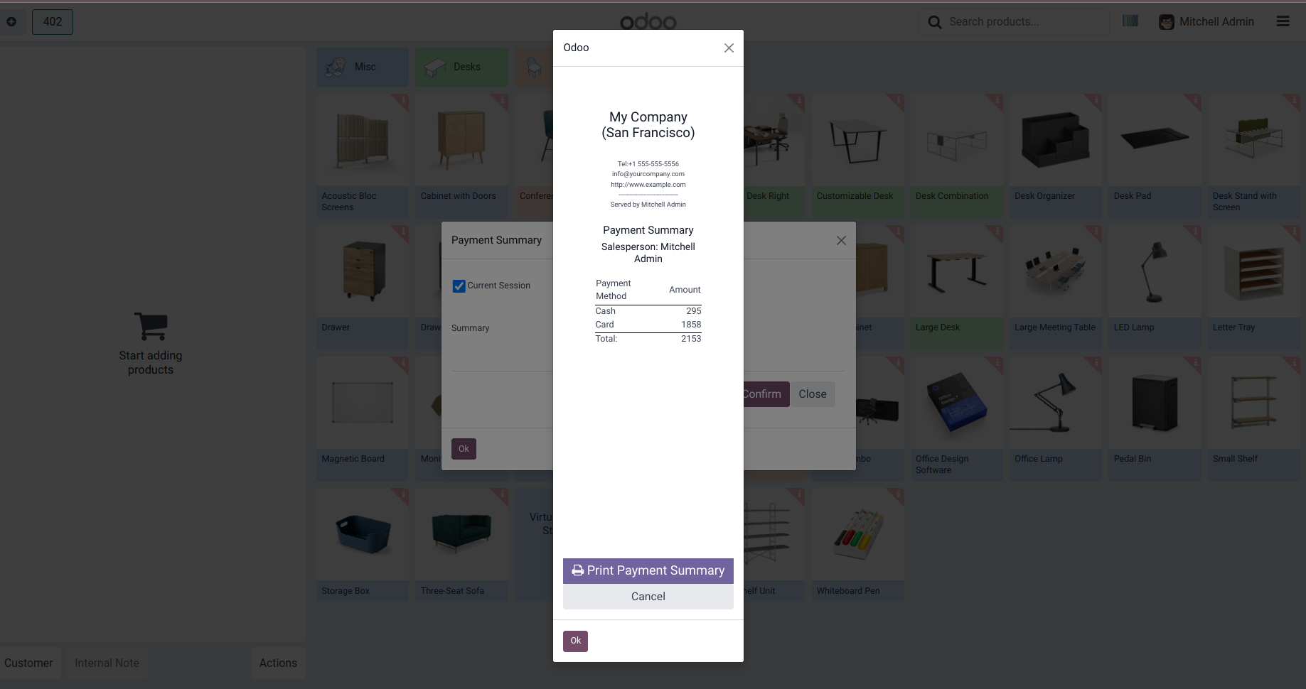 Payment Summary from POS Screen to get payment details of current session/ All sessions within a period