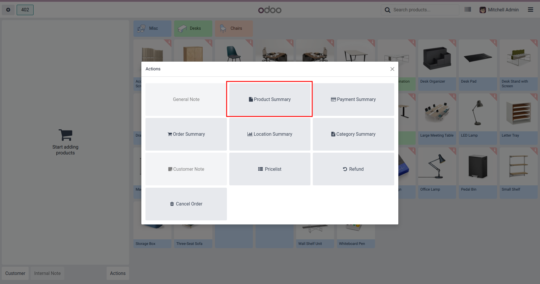 Click Product Summary from POS Screen.