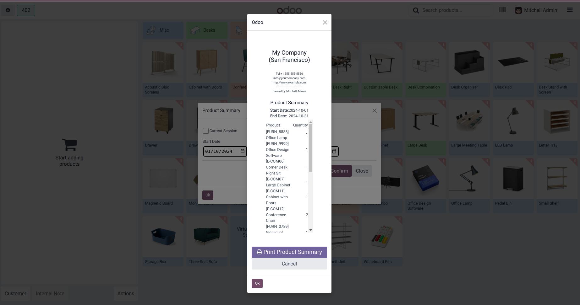 Product Summary of Current Session.