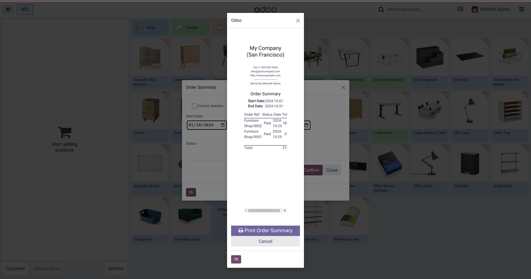 Order Summary from POS Screen to get all order details of current session/ All sessions within a period