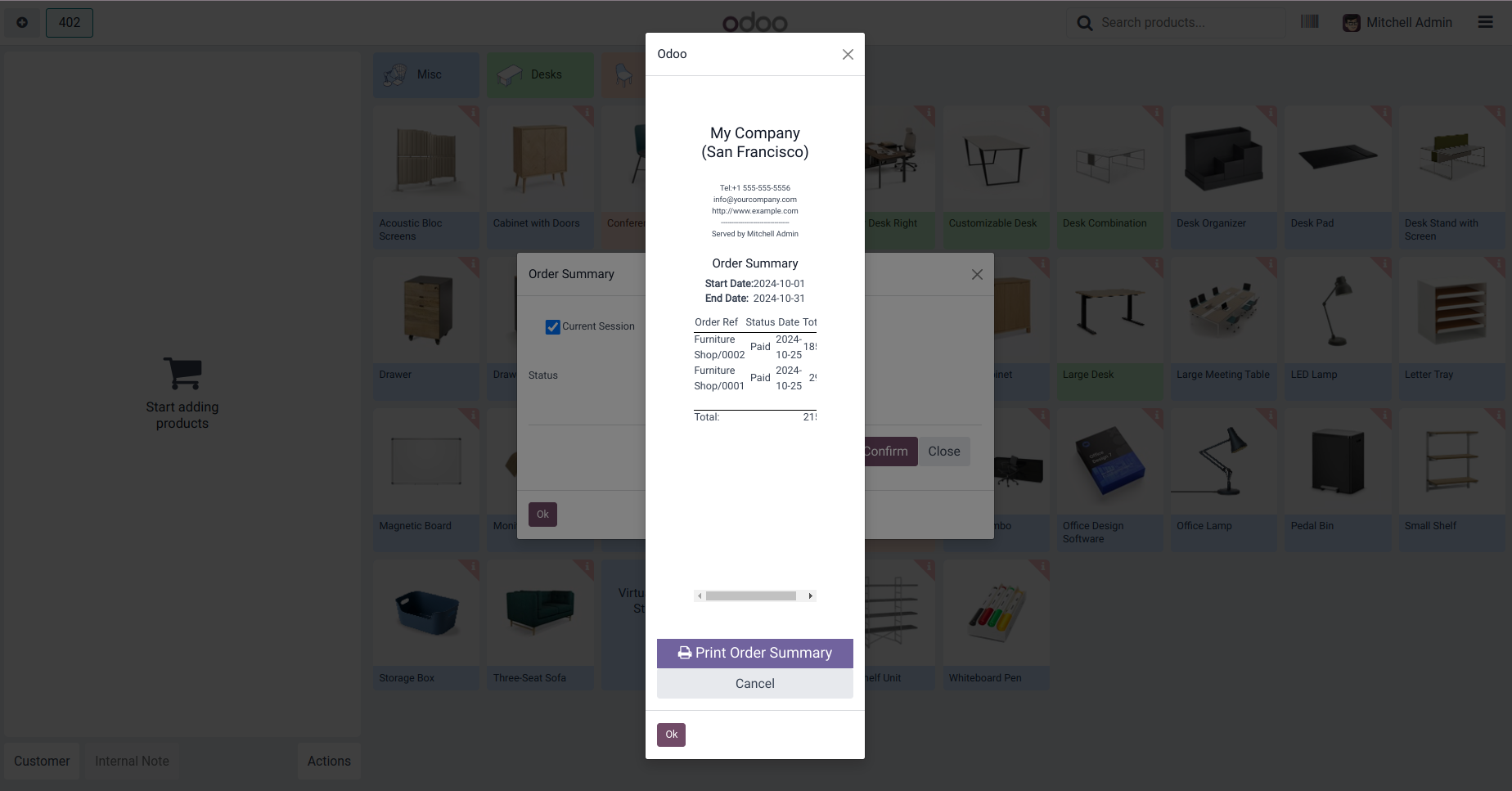Order Summary of Current Session.
