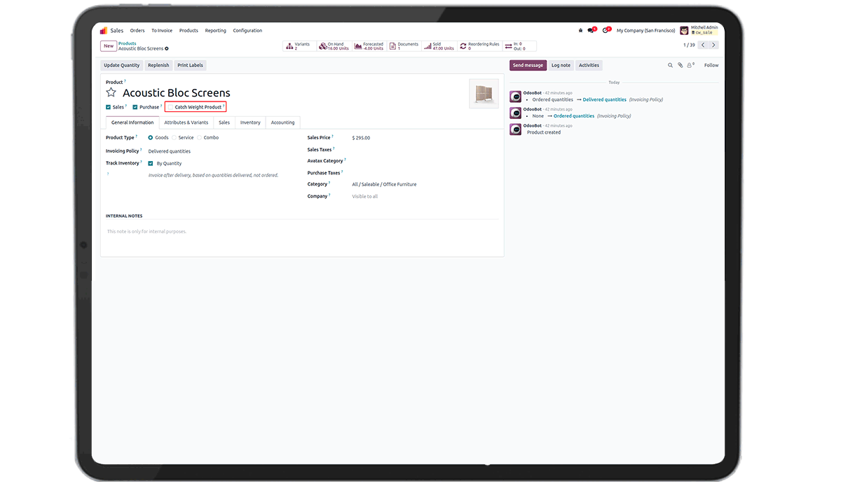 We can click on the checkbox "Catch Weight Product" to Enable The Catch weight on the selected product.