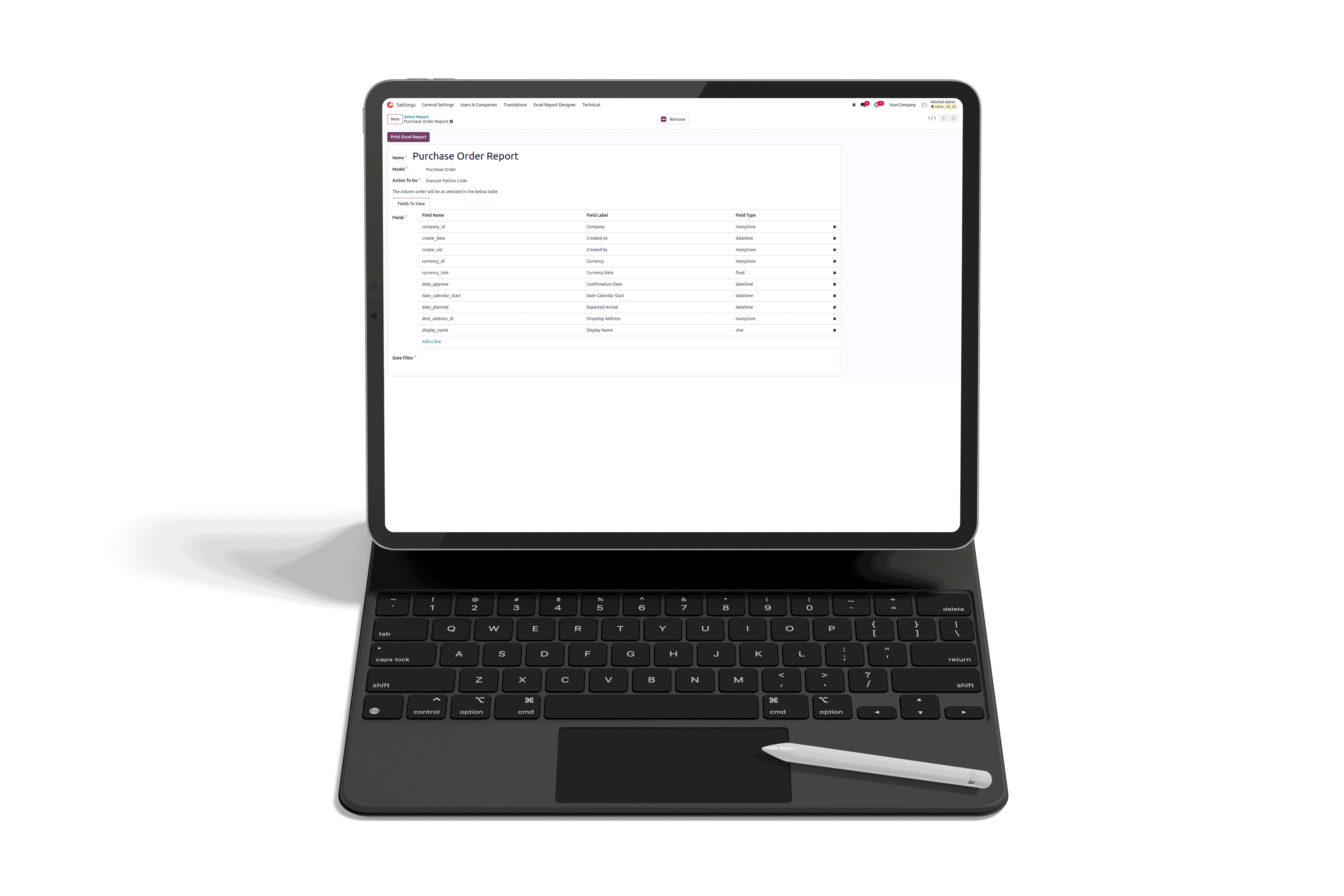 This Module Helps To Create Customised Excel Reports for Any Models.